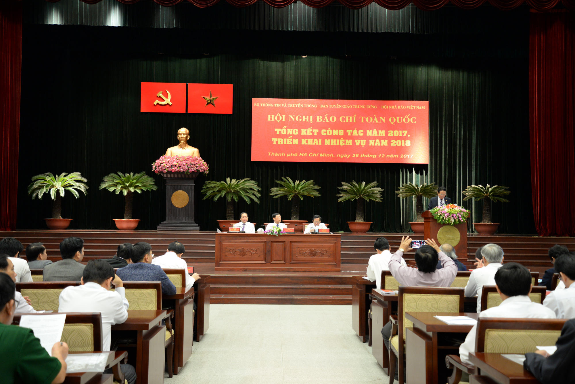 Báo cáo tại hội nghị về công tác báo chí năm 2017 và nhiệm vụ năm 2018, ông Hoàng Vĩnh Bảo, Thứ trưởng Bộ Thông tin và Truyền thông cho biết: Năm 2017, báo chí đã bám sát mục tiêu, giữ vững ổn định chính trị, củng cố và tăng cường thống nhất ý chí trong Đảng, sự đồng thuận của xã hội và lòng tin của nhân dân đối với Đảng, góp phần tạo động lực tinh thần để thực hiện các nhiệm vụ kinh tế - xã hội – an ninh – quốc phòng; thực hiện nghiêm túc sự lãnh đạo, chỉ đạo định hướng thông tin của Đảng, Nhà nước, thông tin kịp thời, trung thực, toàn diện đời sống chính trị, kinh tế - xã hội trong nước và quốc tế và là diễn đàn của nhân dân. Sự phối hợp chặt chẽ giữa cơ quan chỉ đạo, quản lý, chủ quản báo chí trong việc chỉ đạo định hướng thông tin, Ban Tuyên giáo phối hợp với Bộ TTvà TT, Hội nhà báo Việt Nam đã chỉ đạo kịp thời, nhất là những nội dung có tính chất quan trọng, một số vấn đề có tính chất phức tạp nhạy cảm..