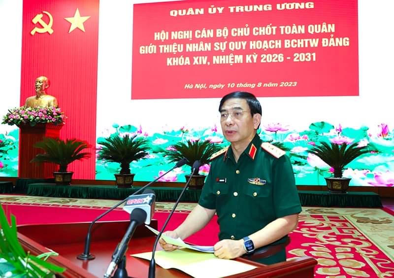 (PLVN) - Sáng 10/8, tại Hà Nội, Quân ủy Trung ương tổ chức Hội nghị cán bộ chủ chốt toàn quân giới thiệu nhân sự quy hoạch Ban Chấp hành Trung ương Đảng khóa XIV, nhiệm kỳ 2026 - 2031. Đại tướng Phan Văn Giang, Ủy viên Bộ Chính trị, Phó Bí thư Quân ủy Trung ương, Bộ trưởng Bộ Quốc phòng chủ trì hội nghị.