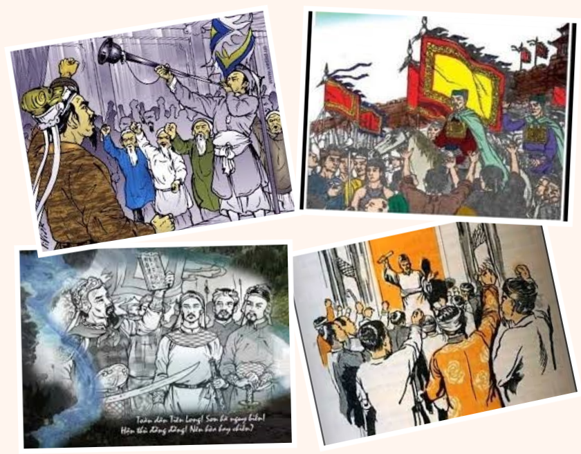Các bức vẽ ghi lại quang cảnh Hội nghị Diên Hồng. |