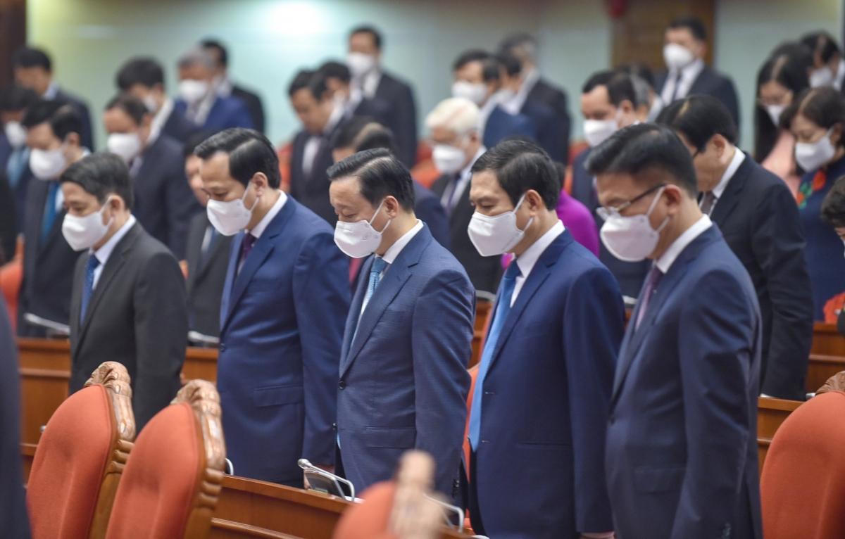 Toàn thể Hội nghị đã dành một phút tưởng niệm đồng bào tử vong; cán bộ, chiến sỹ hy sinh trong đại dịch COVID-19. Ảnh: Hiếu Minh/VOV.VN |