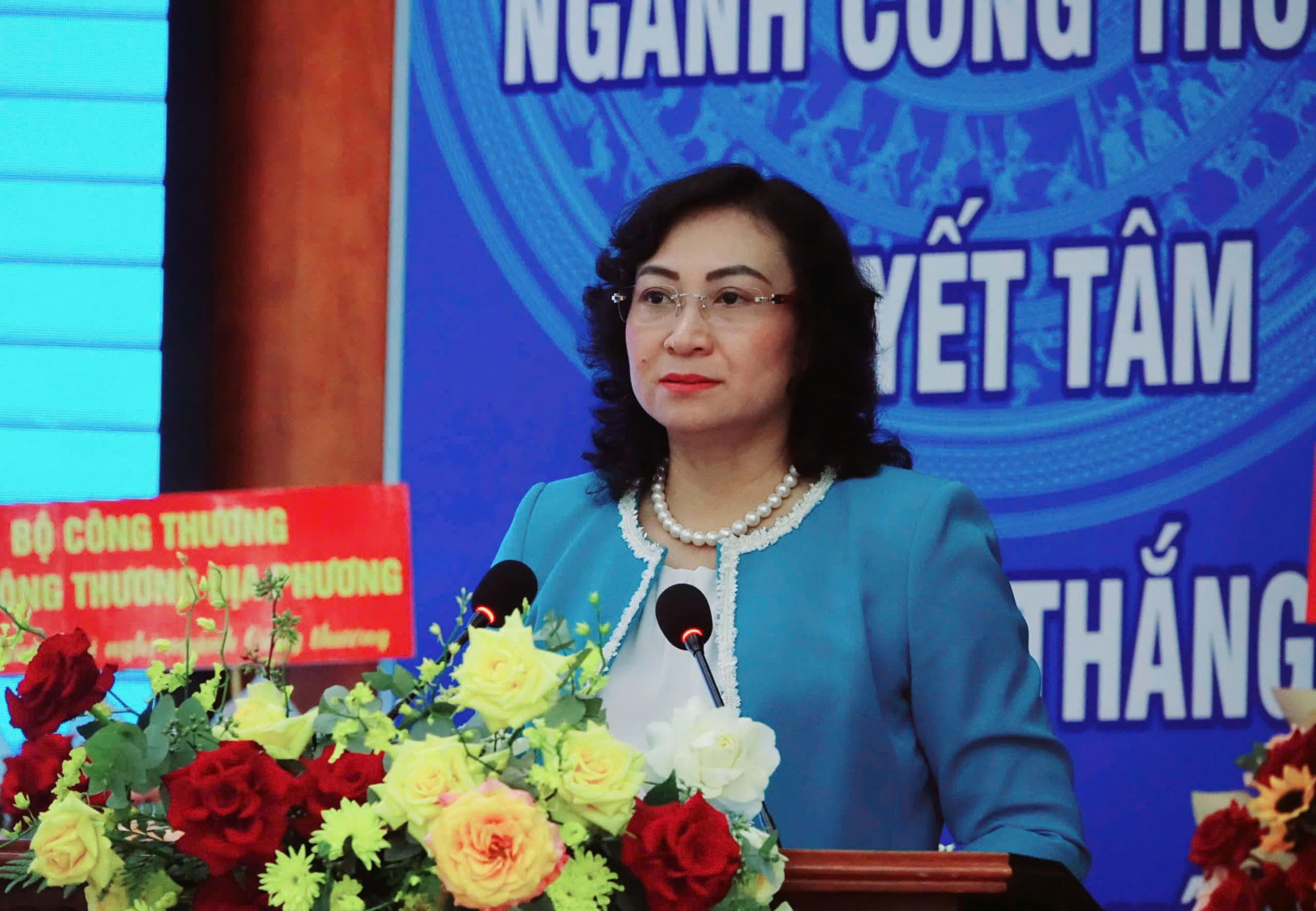 Thứ trưởng Bộ Công thương Phan Thị Thắng phát biểu tại hội nghị. |