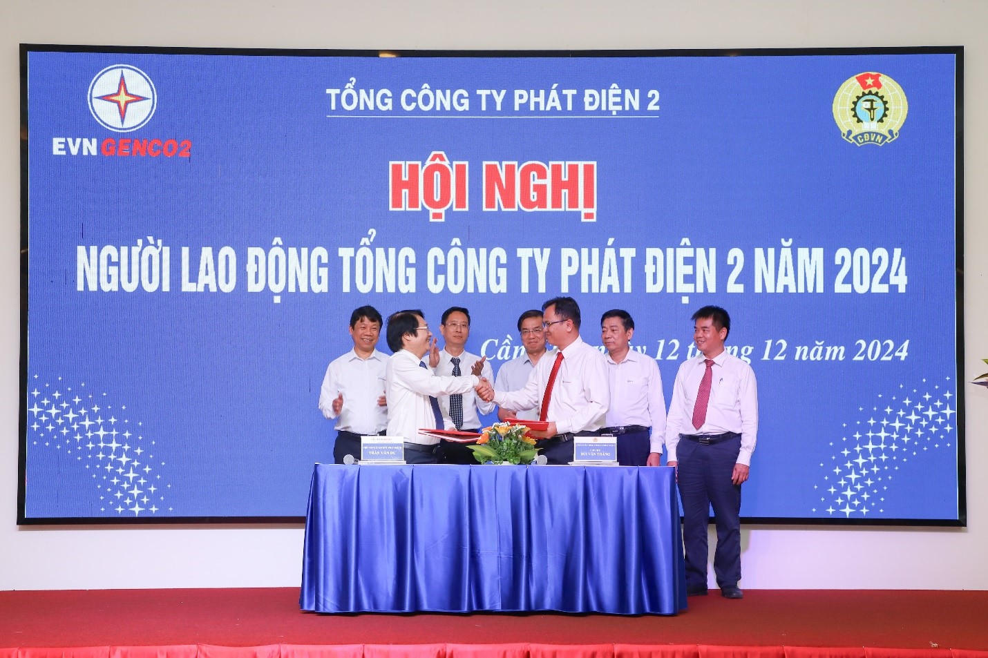 Tại Hội nghị, ông Trần Văn Dư – Phó Tổng Giám đốc thực hiện nhiệm vụ, quyền hạn TGĐ và ông Bùi Văn Thắng – Chủ tịch Công đoàn EVNGENCO2 đã cùng thực hiện ký kết Thỏa ước lao động tập thể, quyết tâm tiếp tục bảo vệ quyền lợi, trách nhiệm của người sử dụng lao động và người lao động trong quan hệ lao động của Tổng công ty Phát điện 2 trên nguyên tắc tự nguyện, bình đẳng, công khai và tôn trọng lẫn nhau, thúc đẩy việc phát triển của Tổng công ty và người lao động.