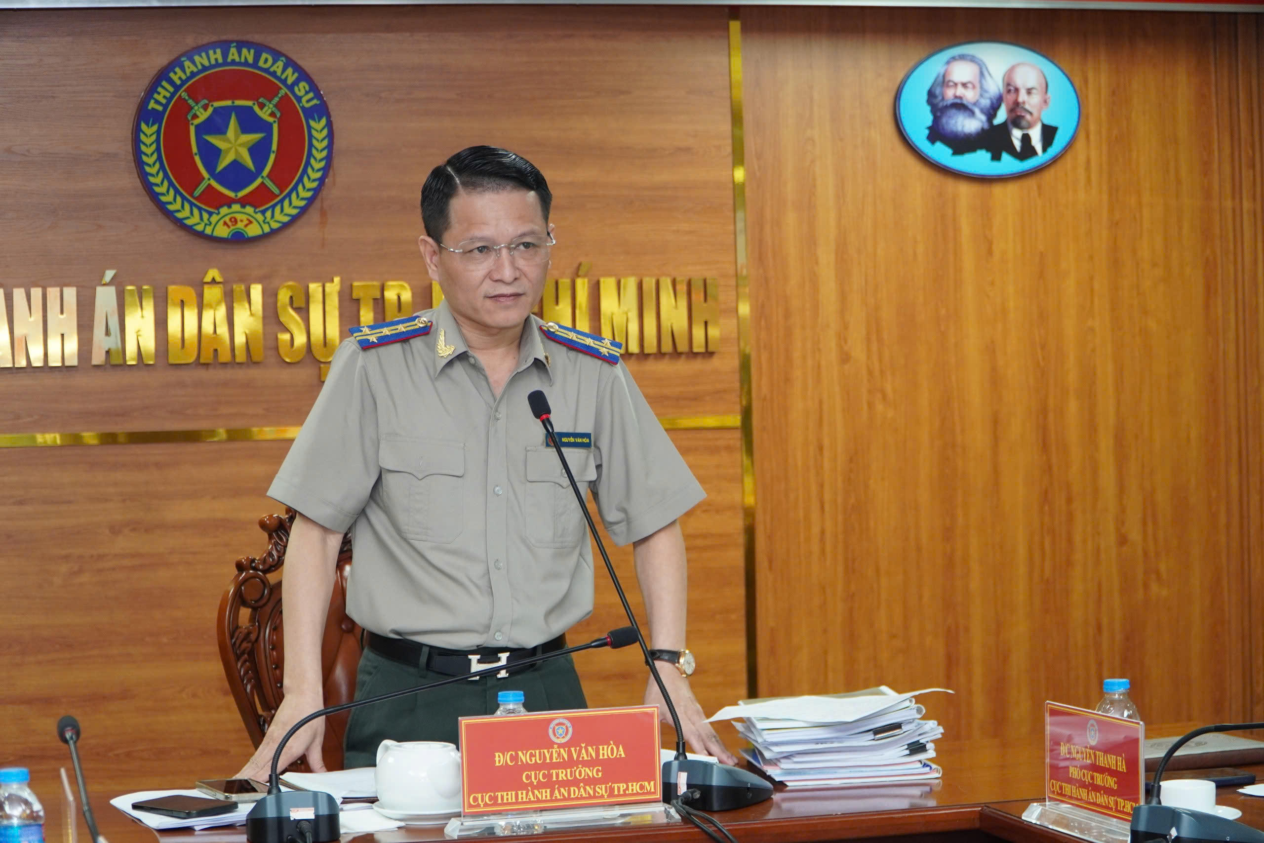 (PLVN) -Sáng 05/11, Cục Thi hành án dân sự TP.HCM tổ chức Hội nghị quán triệt công tác thẩm định giá tài sản thi hành án dân sự trên địa bàn Thành phố Hồ Chí Minh nhằm tăng cường chấn chỉnh, quản lý, theo dõi công tác thẩm định giá, bán đấu giá tài sản trên địa bàn Thành phố. Ông Nguyễn Văn Hòa - Cục trưởng Cục THADS TP.HCM chủ trì Hội nghị