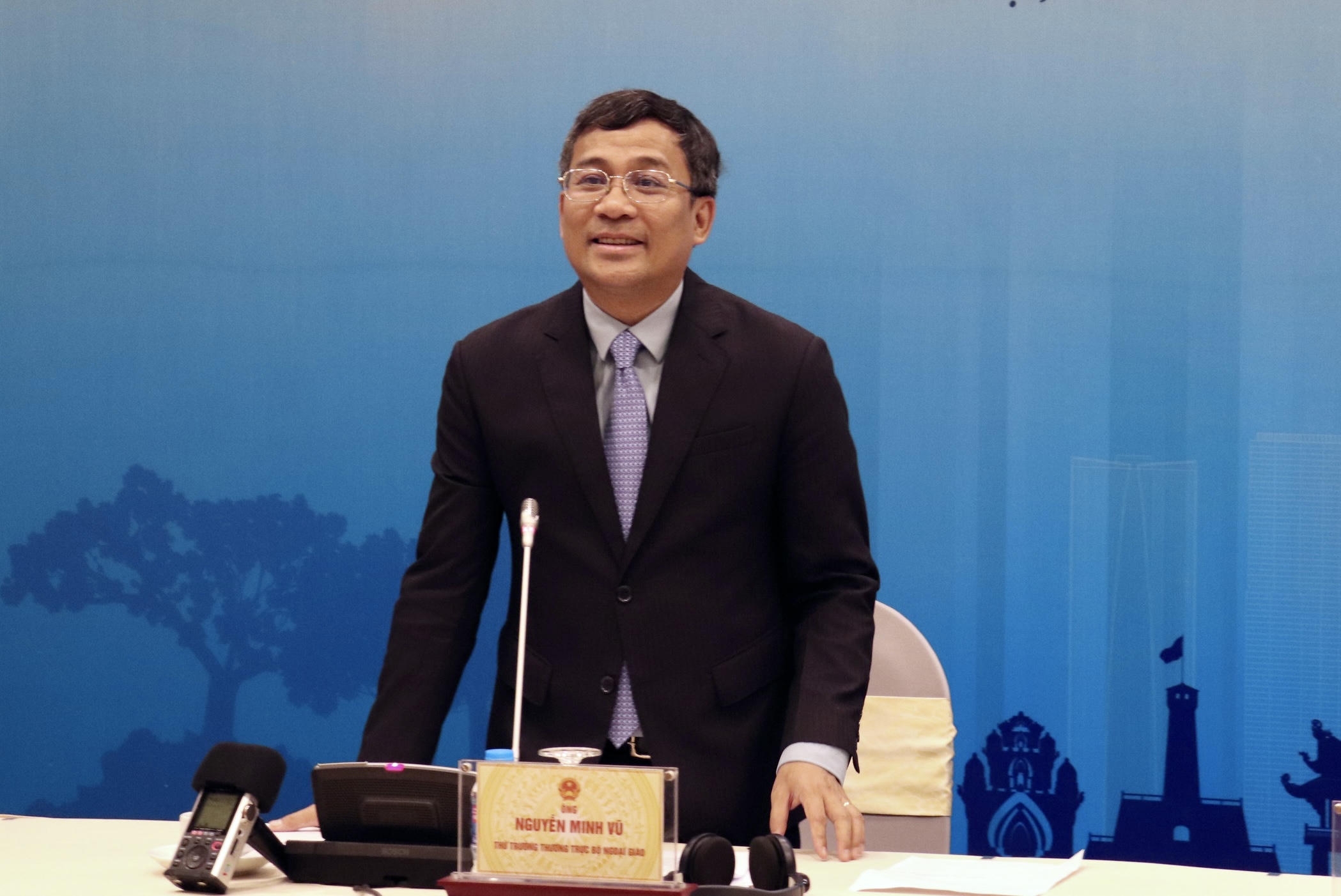 Thứ trưởng Thường trực Bộ Ngoại giao Nguyễn Minh Vũ phát biểu tại họp báo. |