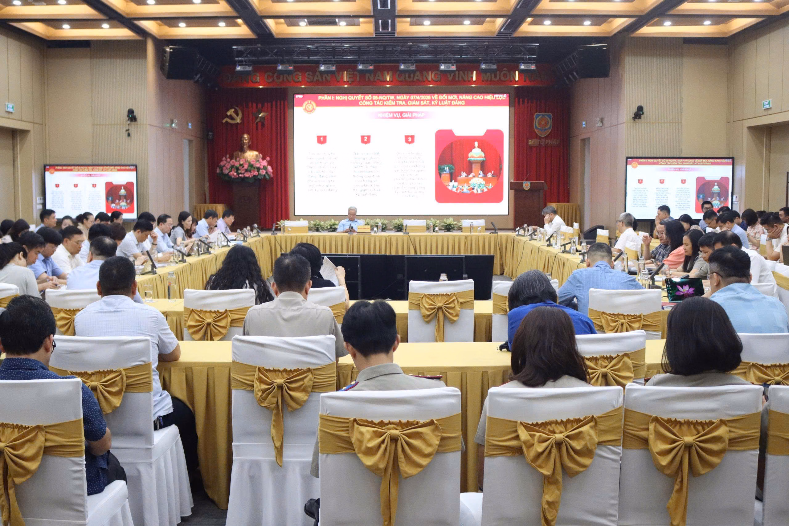 Tham dự Hội nghị tại điểm cầu Trung ương và điểm cầu các tỉnh ủy, thành ủy, đảng ủy trực thuộc Trung ương có các đồng chí Ủy viên Bộ Chính trị, nguyên Ủy viên Bộ Chính trị, Bí thư Trung ương Đảng, nguyên Bí thư Trung ương Đảng, Ủy viên Trung ương Đảng, nguyên Ủy viên Trung ương Đảng; các đồng chí Ủy viên Quân ủy Trung ương, Đảng ủy Công an Trung ương, Đảng ủy các cơ quan Đảng Trung ương, Đảng ủy Chính phủ, Đảng ủy Quốc hội, Đảng ủy Mặt trận Tổ quốc các đoàn thể Trung ương; các đồng chí lãnh đạo các ban, bộ, ngành, đoàn thể Trung ương; các đồng chí Bí thư, Phó Bí thư, Ủy viên Ban Thường vụ, Ủy viên Ban Chấp hành các tỉnh ủy, thành ủy; lãnh đạo các ban, sở, ngành, đoàn thể cấp tỉnh; các đồng chí Ủy viên Ban Chấp hành Đảng bộ, Ủy viên Ủy ban Kiểm tra Đảng ủy, lãnh đạo các phòng, ban Mặt trận Tổ quốc và các đoàn thể, đơn vị sự nghiệp cấp xã.