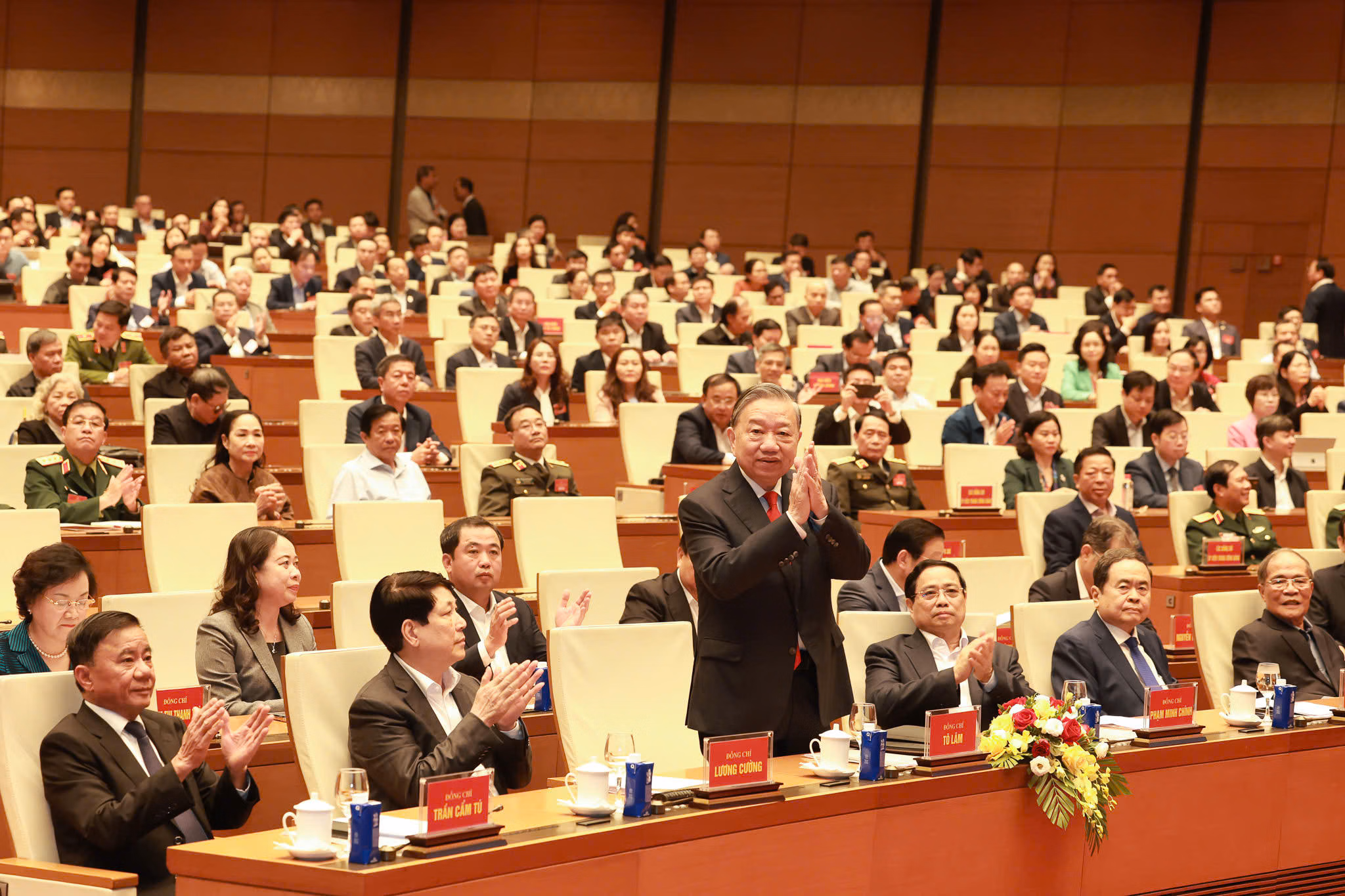 Cùng dự Hội nghị có Ủy viên Bộ Chính trị khóa XIII, Chủ tịch nước Lương Cường; nguyên Ủy viên Bộ Chính trị, nguyên Chủ tịch nước Trương Tấn Sang (dự tại điểm cầu Tây Ninh); Ủy viên Bộ Chính trị khóa XIII, Thủ tướng Chính phủ Phạm Minh Chính; Ủy viên Bộ Chính trị, Chủ tịch Quốc hội Trần Thanh Mẫn; nguyên Ủy viên Bộ Chính trị, nguyên Chủ tịch Quốc hội Nguyễn Sinh Hùng; Ủy viên Bộ Chính trị, Thường trực Ban Bí thư Trần Cẩm Tú.