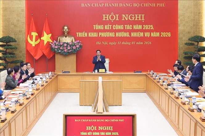 Ngày 11/1, Ủy viên Bộ Chính trị, Bí thư Đảng uỷ Chính phủ, Thủ tướng Chính phủ Phạm Minh Chính chủ trì Hội nghị tổng kết công tác năm 2025, triển khai phương hướng, nhiệm vụ năm 2026 của Ban chấp hành Đảng bộ Chính phủ.