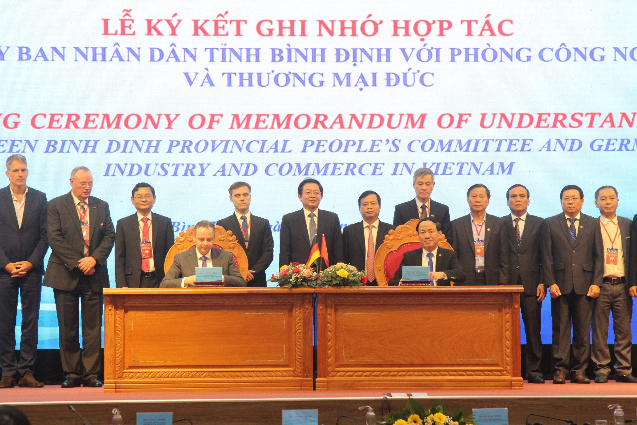 Trong khuôn khổ Hội nghị lần này, Uỷ ban nhân dân tỉnh Bình Định cũng đã Ký kết các Bản ghi nhớ hợp tác với Phòng Công nghiệp và Thương mại Đức tại Việt Nam cùng Bản ghi nhớ hợp tác phát triển dự án trang trại điện gió ngoài khơi tại tỉnh Bình Định với Công ty PNE AG.