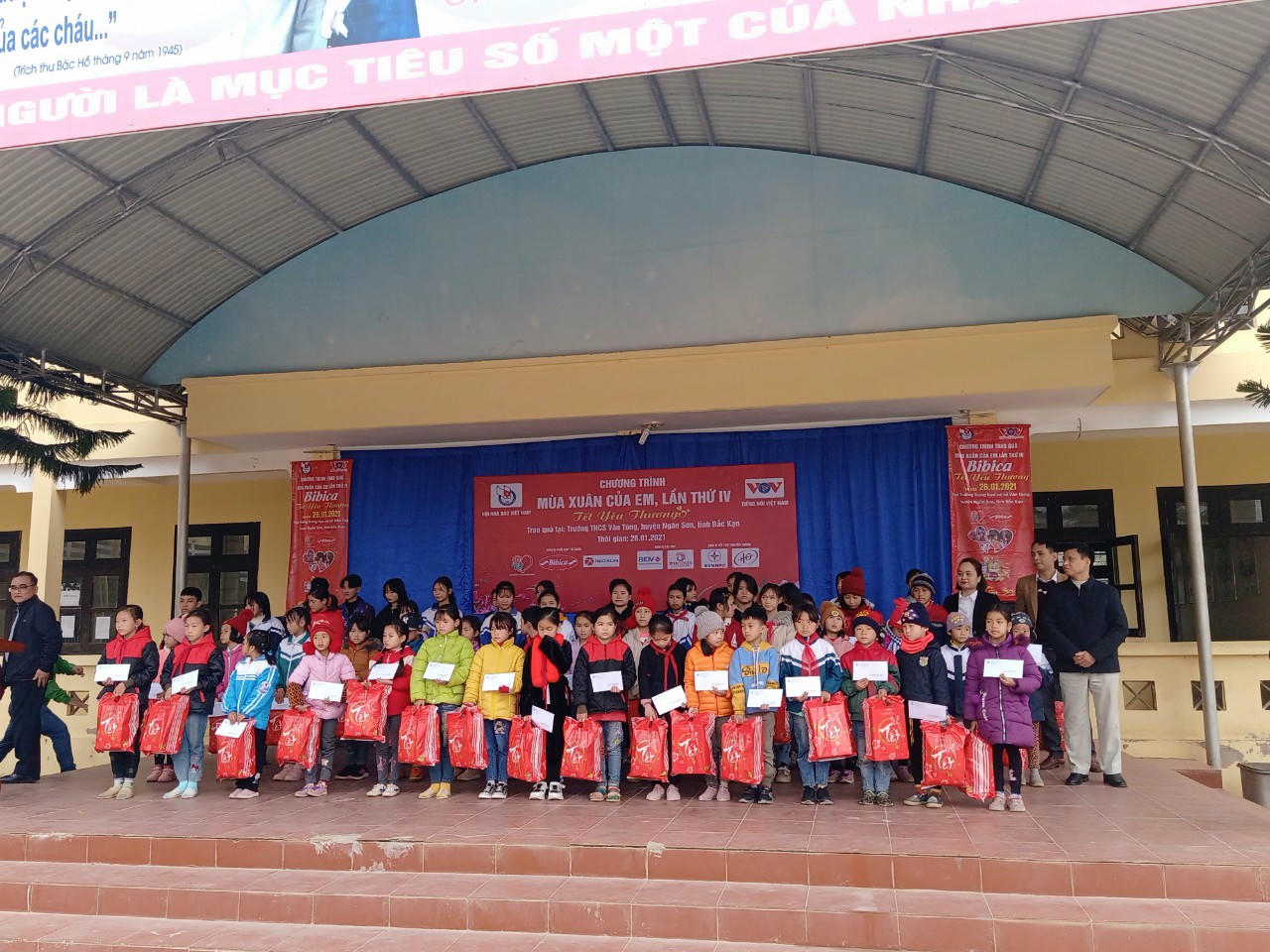 Trước đó, chiều 25/1, tại huyện Hà Quảng, tỉnh Cao Bằng, Chương trình trao 100 suất học bổng và 200 suất quà cho các em học sinh có hoàn cảnh khó khăn trên địa bàn huyện. Ngoài ra, Chương trình cũng đã hỗ trợ cải tạo 02 điểm trường tại xã Sính Lủng là điểm Là Chúa Tủng và điểm Cá Ha.