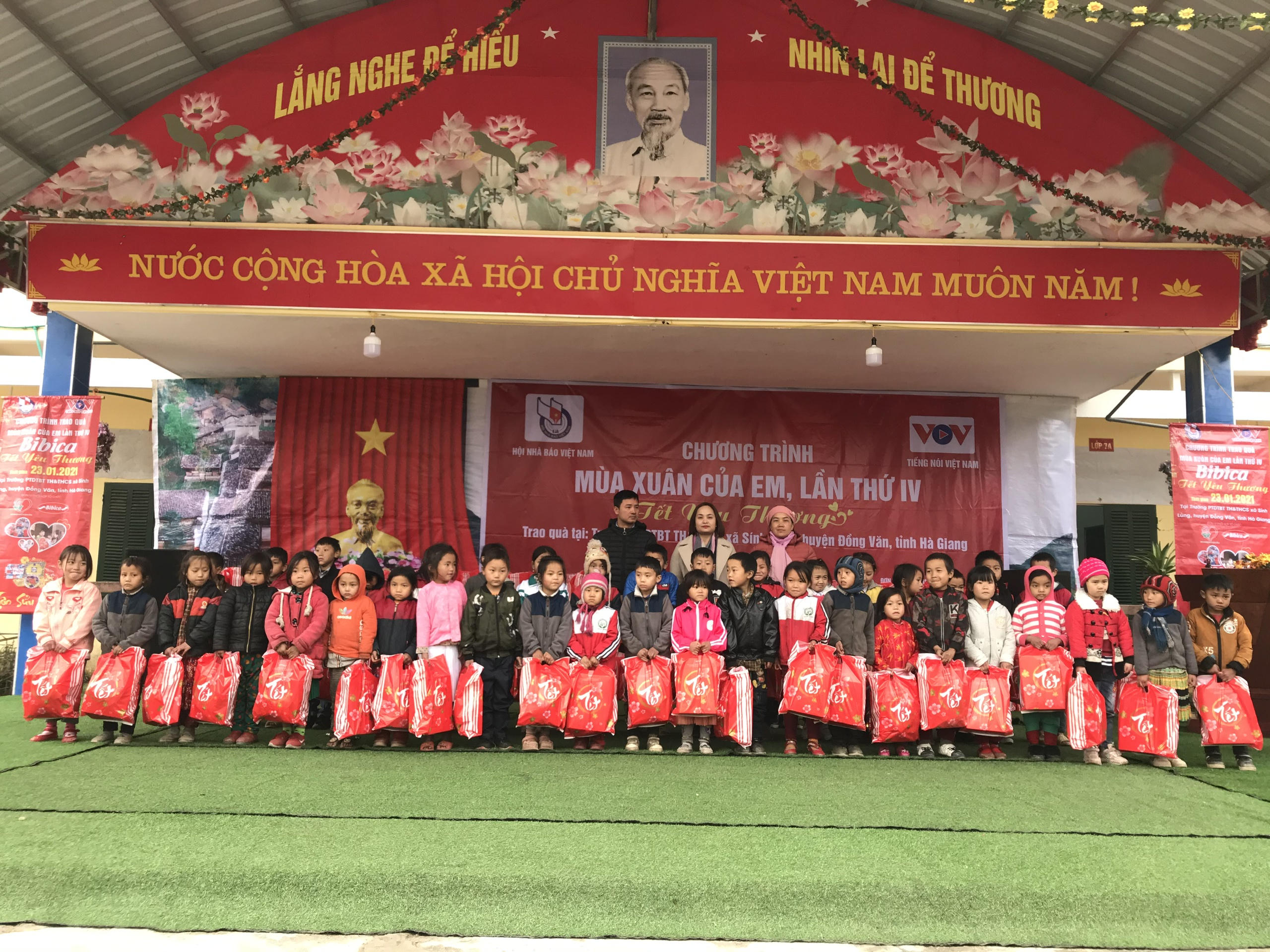Chiều 23/1, tại xã Sính Lủng, huyện Đồng Văn, tỉnh Hà Giang, Chương trình đã trao 100 suất học bổng và 250 suất quà cho các em học sinh có hoàn cảnh khó khăn và các thầy cô giáo tại xã Sính Lủng.