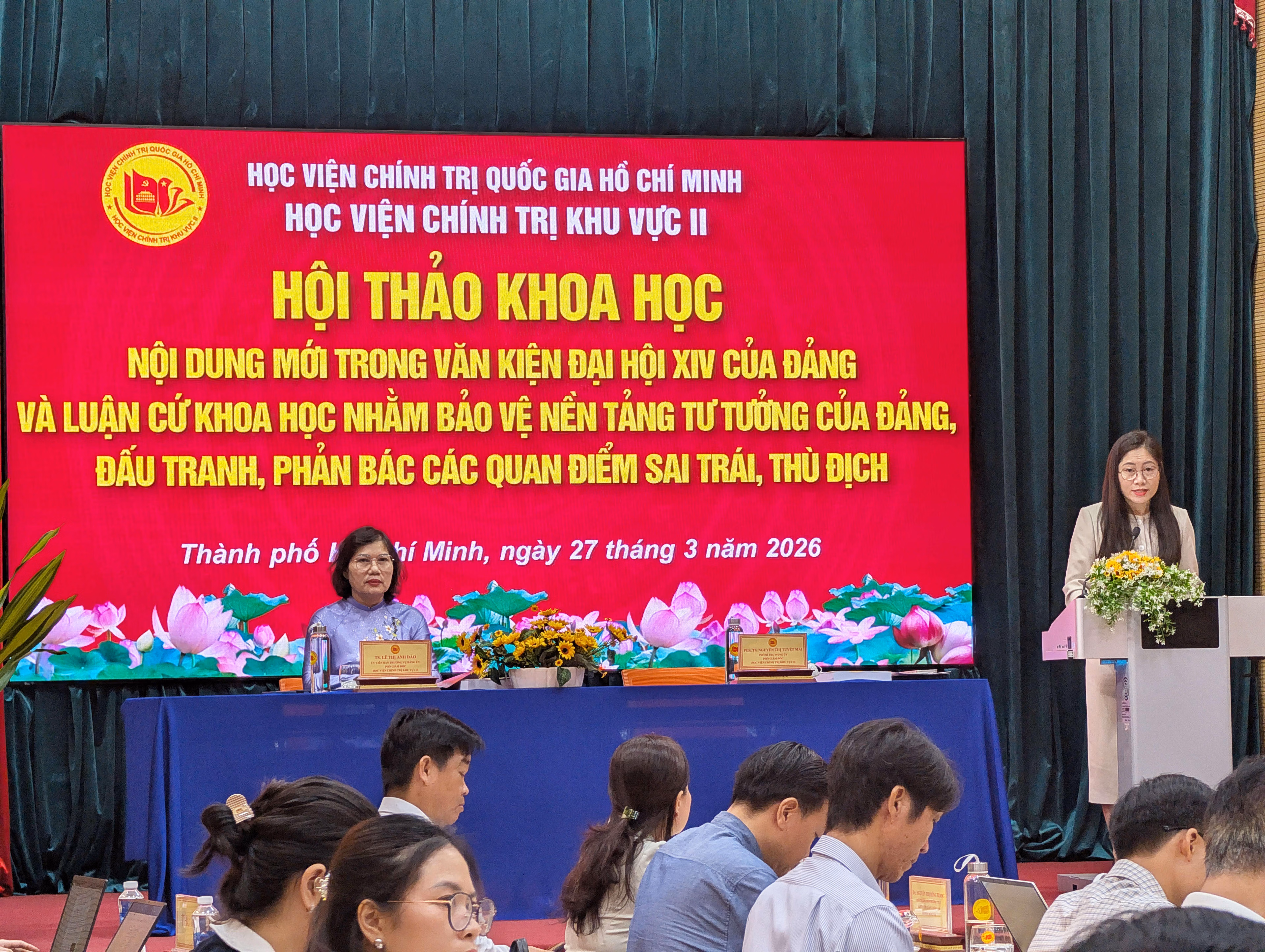 Ngày 27/3, Học viện Chính trị khu vực II (Học viện Chính trị Hồ Chí Minh) tổ chức Hội thảo về “Nội dung mới trong Văn kiện Đại hội lần thứ XIV của Đảng và luận cứ khoa học nhằm bảo vệ nền tảng tư tưởng của Đảng, đấu tranh phản bác các quan điểm sai trái, thù địch”.