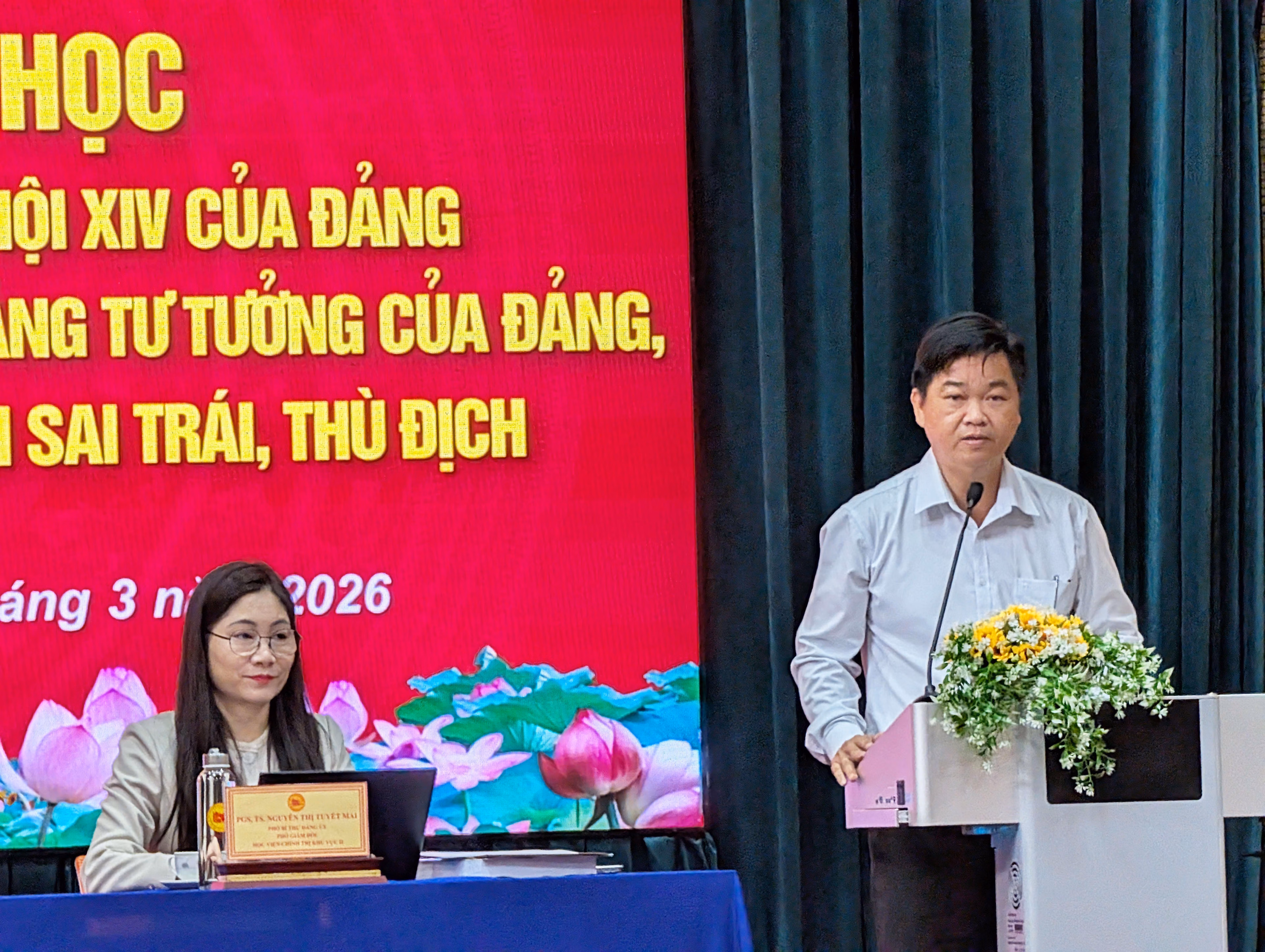 Phát biểu tại Hội thảo, PGS.TS. Nguyễn Thị Tuyết Mai, Phó Giám đốc Học viện Chính trị khu vực II khẳng định, Đại hội đại biểu toàn quốc lần thứ XIV của Đảng là một sự kiện chính trị có ý nghĩa đặc biệt quan trọng đối với sự nghiệp xây dựng và bảo vệ Tổ quốc trong giai đoạn phát triển mới của đất nước.
