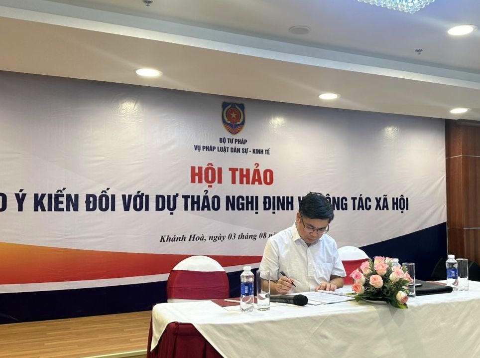 (PLVN) - Ngày 3/8, nhằm thực hiện Quyết định số 112/QĐ-TTg ngày 22/01/2021 của Thủ tướng Chính phủ về ban hành Chương trình phát triển công tác xã hội giai đoạn 2021-2030, Vụ Pháp luật dân sự - kinh tế (Bộ Tư pháp) đã tổ chức hội thảo cho ý kiến đối với dự thảo Nghị định về Công tác xã hội tại tỉnh Khánh Hòa.