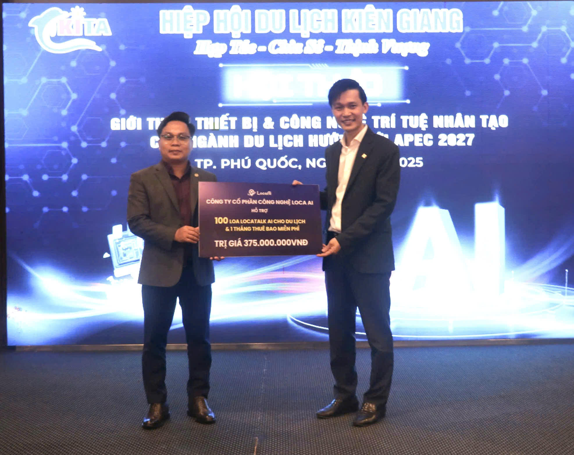 Công ty cổ phần công nghệ LOCAAI trao bảng hỗ trợ thuê bao miễn phí cho Hiệp hội Du lịch tỉnh Kiên Giang. |