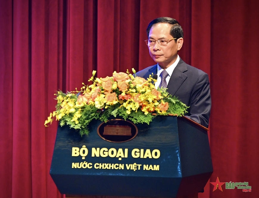 | Bộ trưởng Bộ Ngoại giao Bùi Thanh Sơn phát biểu tại hội thảo. |
