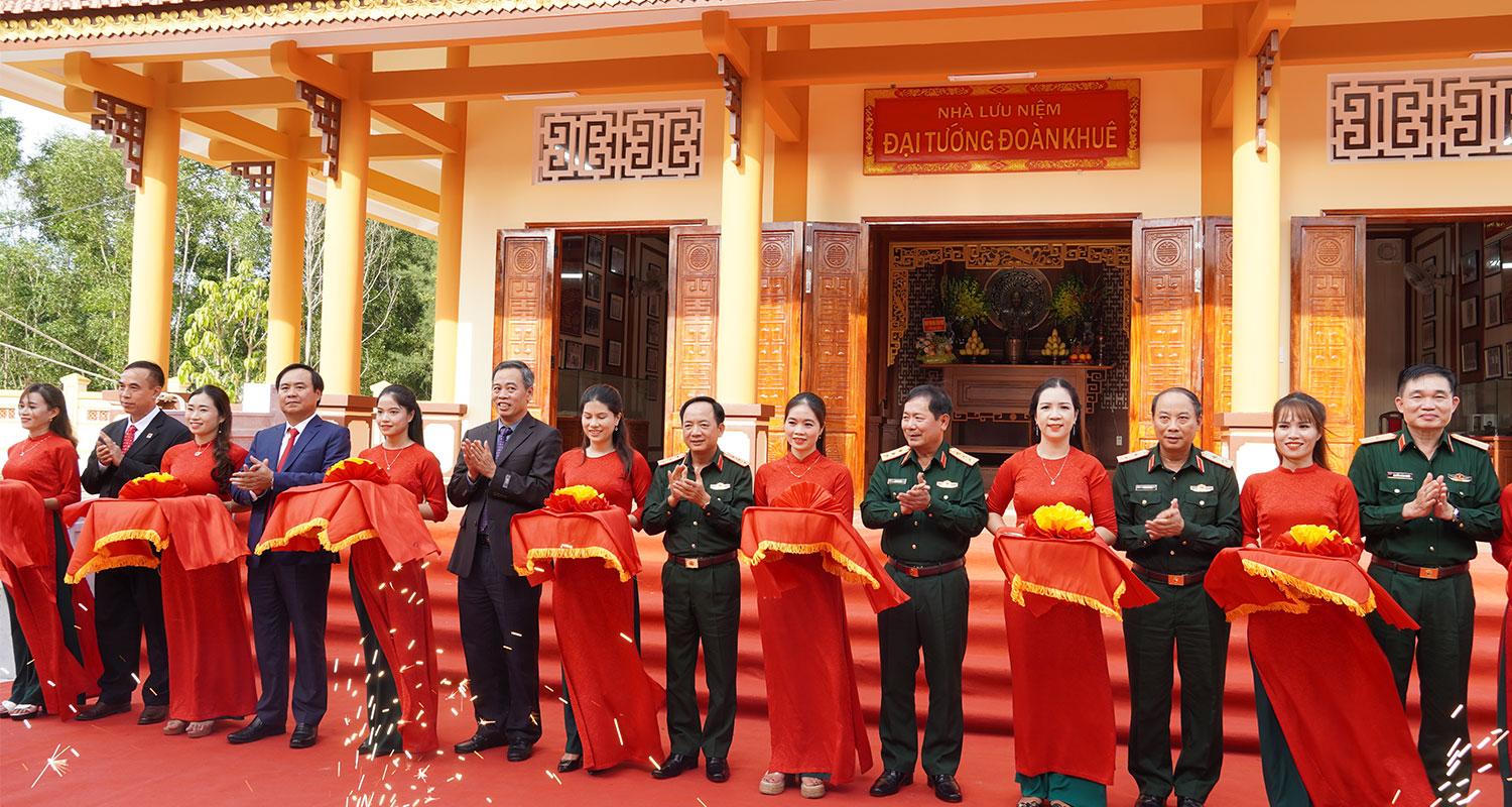 Các đại biểu cắt băng khánh thành Khu lưu niệm Đại tướng Đoàn Khuê. |