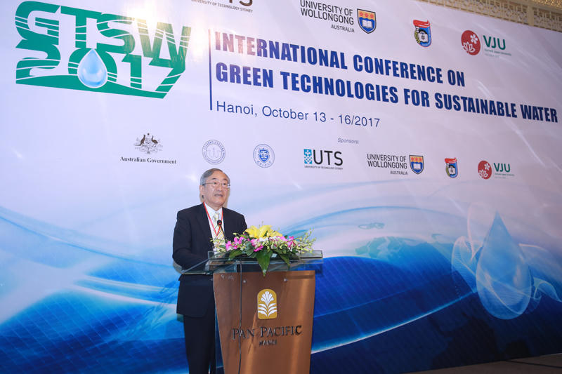 Ông Furuta Motoo - Hiệu trưởng trường Đại học Việt Nhật cũng bày tỏ lòng biết ơn các nhà khoa học, Ban tổ chức và nhà tài trợ đã cùng nhau làm việc trong nhiều tháng qua để Hội thảo diễn ra đúng kế hoạch. Bên cạnh đó, ông cũng khẳng định trường Đại học Việt Nhật là một trường Đại học mới được thành lập với định hướng phát triển trở thành một trong những trường Đại học nghiên cứu uy tín ở châu Á, với trọng tâm là các lĩnh vực công nghệ kỹ thuật tiên tiến và khoa học liên ngành phục vụ phát triển bền vững. Công nghệ môi trường là một trong những lĩnh vực mà nhà trường ưu tiên phát triển, vì vậy nhà trường cam kết luôn nỗ lực sáng tạo và hành động vì một môi trường nước bền vững.