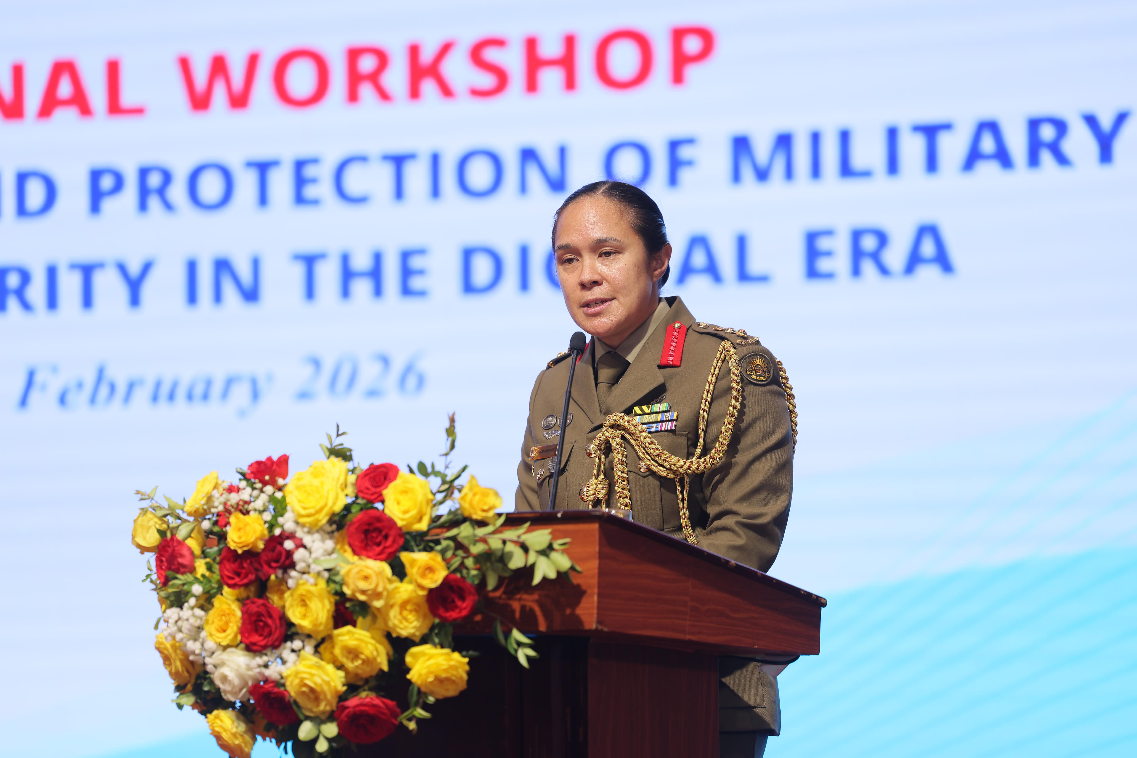 Bà Caroline Nyamayemombe, Trưởng đại diện UN Women tại Việt Nam nhấn mạnh rằng, trao quyền và bảo vệ nữ quân nhân trong kỷ nguyên kỹ thuật số không chỉ là việc bảo vệ các quyền cơ bản của phụ nữ và trẻ em gái trên không gian mạng, mà còn là sự sẵn sàng hoạt động, thích ứng và đẩy mạnh lợi thế chiến lược và an ninh số của quốc gia. “Việc đảm bảo phụ nữ có các kỹ năng, cơ chế bảo vệ và cơ hội lãnh đạo cần thiết là rất quan trọng trong việc củng cố lực lượng vũ trang và nâng cao hiệu quả của công tác quốc phòng và an ninh bền vững”, bà nói.
