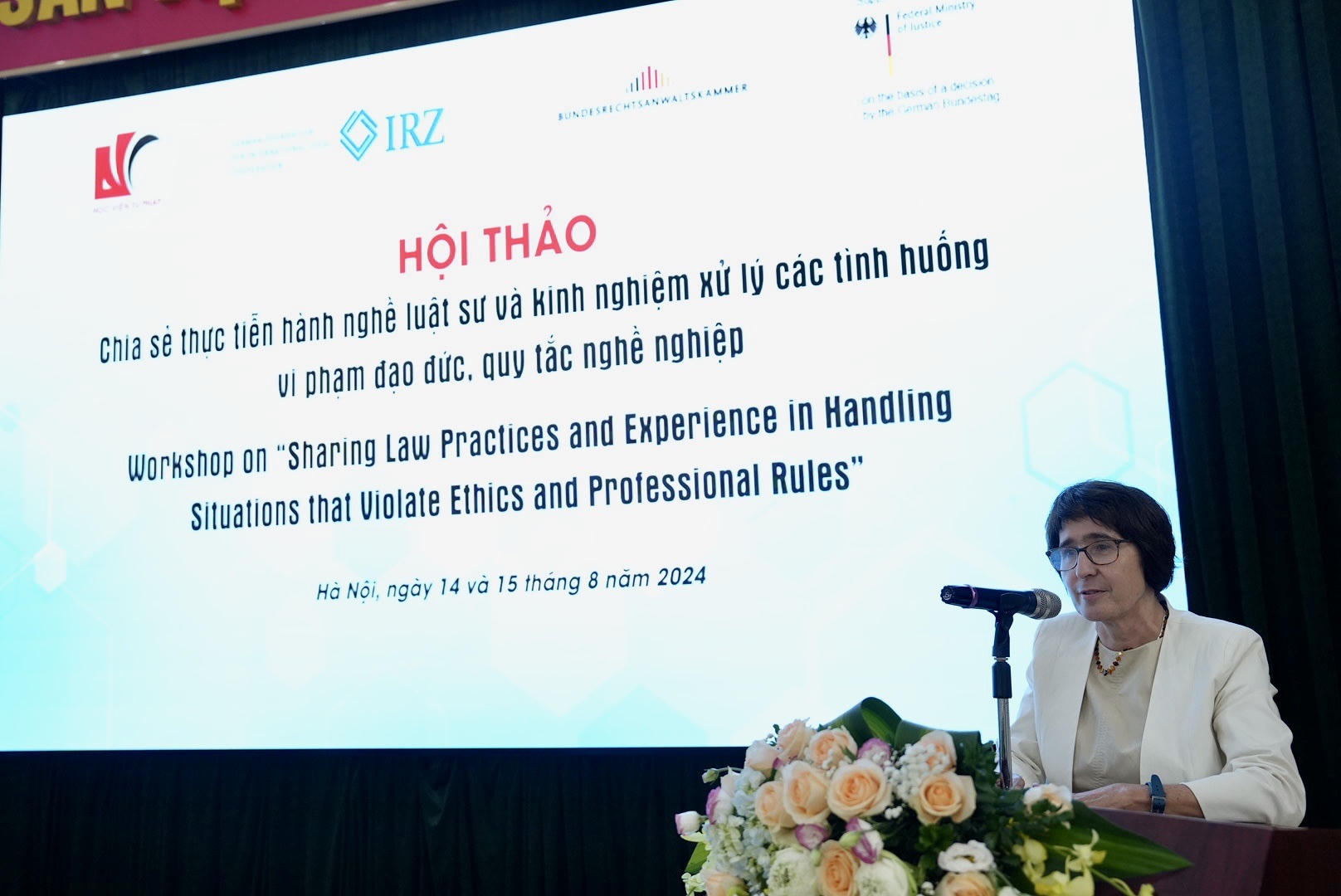 Tại Hội thảo, các đại biểu đã được nghe bà Swetlana Schaworonkowa, Luật sự và cố vấn pháp lý cao cấp, Đoàn Luật sư liên bang Đức giới thiệu về hệ thống Đoàn Luật sư tại Đức (các Đoàn Luật sư khu vực; Đoàn Luật sư liên bang Đức (BRAK); nguyên tắc tự quản…).