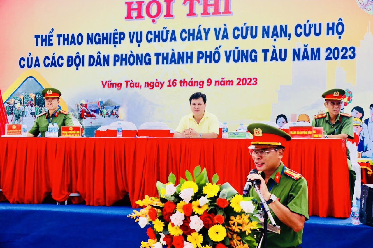 Sáng 16/9, TP Vũng Tàu (tỉnh Bà Rịa – Vũng Tàu), UBND thành phố và Công an TP Vũng Tàu tổ chức Hội thi thể thao nghiệp vụ chữa cháy và cứu nạn, cứu hộ cho các Đội dân phòng TP Vũng Tàu năm 2023.