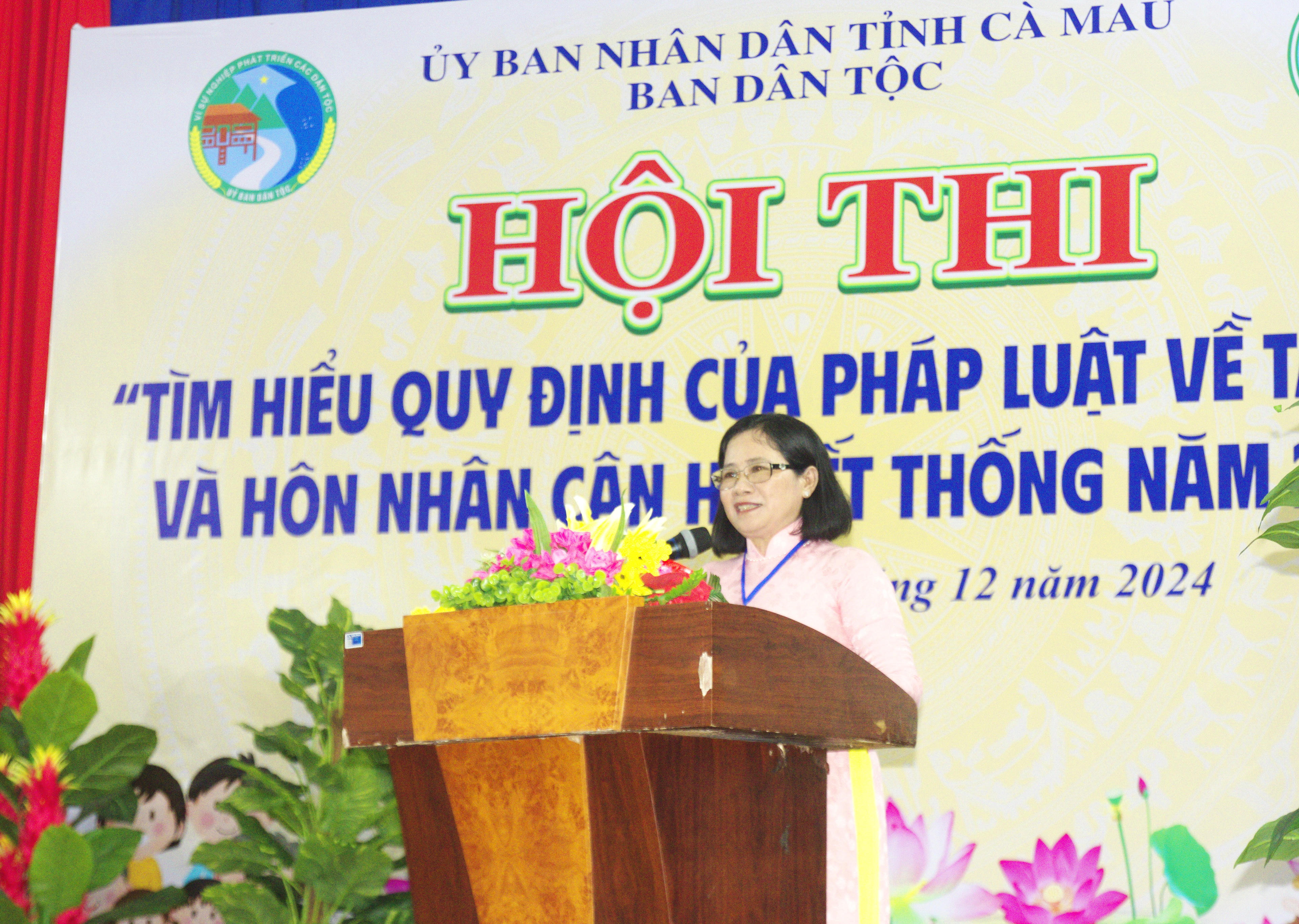 Bà Quách Kiều Mai - Phó trưởng Ban Dân tộc tỉnh Cà Mau cho biết: Mục đích của Hội thi tìm hiểu pháp luật về tảo hôn và hôn nhân cận huyết thống, nhằm triển khai thực hiện có hiệu quả các nội dung, nhiệm vụ của Tiểu dự án 2 thuộc Dự án 9, Chương trình mục tiêu quốc gia phát triển kinh tế - xã hội vùng đồng bào dân tộc thiểu số và miền núi (DTTS&MN) giai đoạn 2021 - 2030, giai đoạn I: từ năm 2021 - 2025: Giảm thiểu tình trạng tảo hôn và hôn nhân cận huyết thống trong vùng đồng bào dân tộc thiểu số.