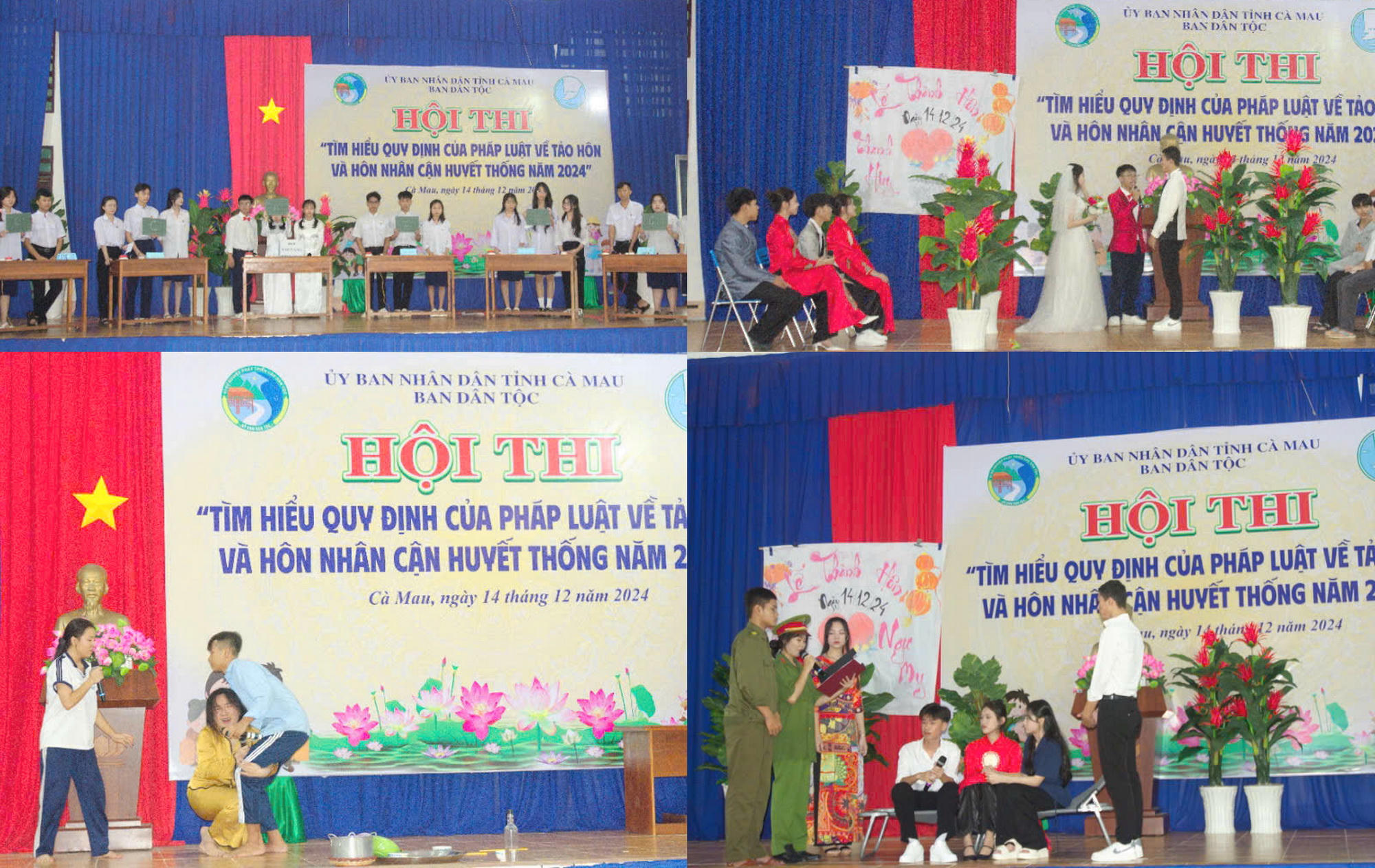 (PLVN) - Với mục tiêu đẩy mạnh hoạt động tuyên truyền, nâng cao nhận thức trong thanh, thiếu niên về tảo hôn và hôn nhân cận huyết thống, ngày 14/12, Ban Dân tộc tỉnh Cà Mau phối hợp Trường phổ thông Dân tộc nội trú tỉnh tổ chức Hội thi tìm hiểu pháp luật về tảo hôn và hôn nhân cận huyết thống. Hội thi dành cho học sinh khối 11 và 12.