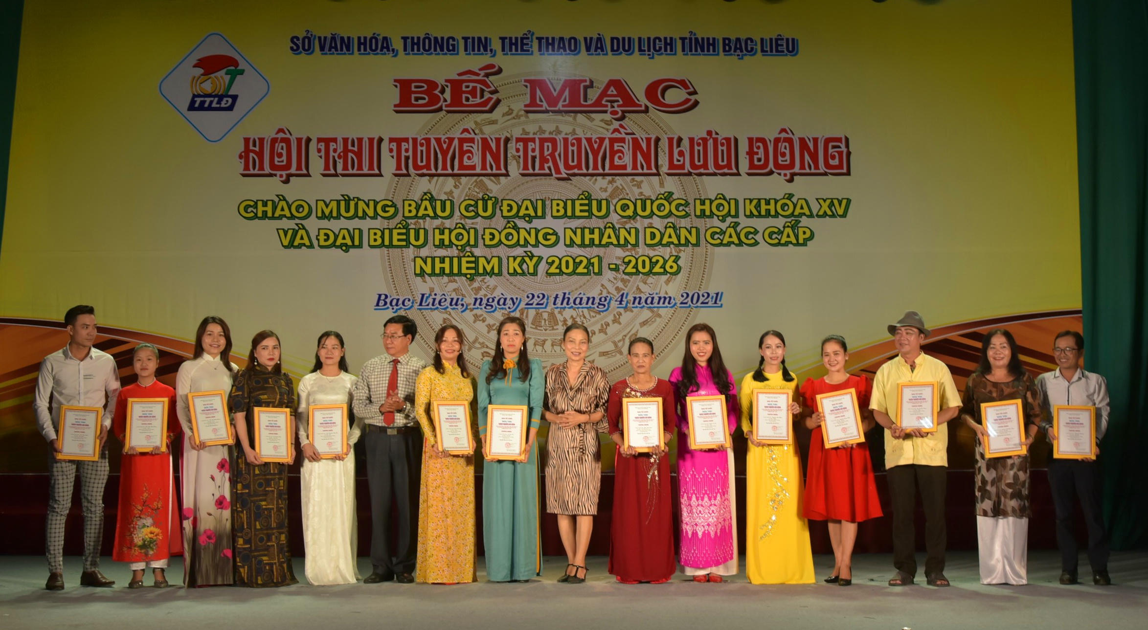 Qua hai đêm diễn ra Hội thi trong không khí sôi nổi, hào hứng, hấp dẫn, tối 22/4, tại Trung tâm Văn hóa tỉnh, Hội thi “Tuyên truyền bầu cử đại biểu Quốc hội khóa XV và đại biểu HĐND các cấp nhiệm kỳ 2021-2026” do Sở Văn hóa, Thông tin, Thể thao và Du lịch tỉnh Bạc Liêu tổ chức đã bế mạc.