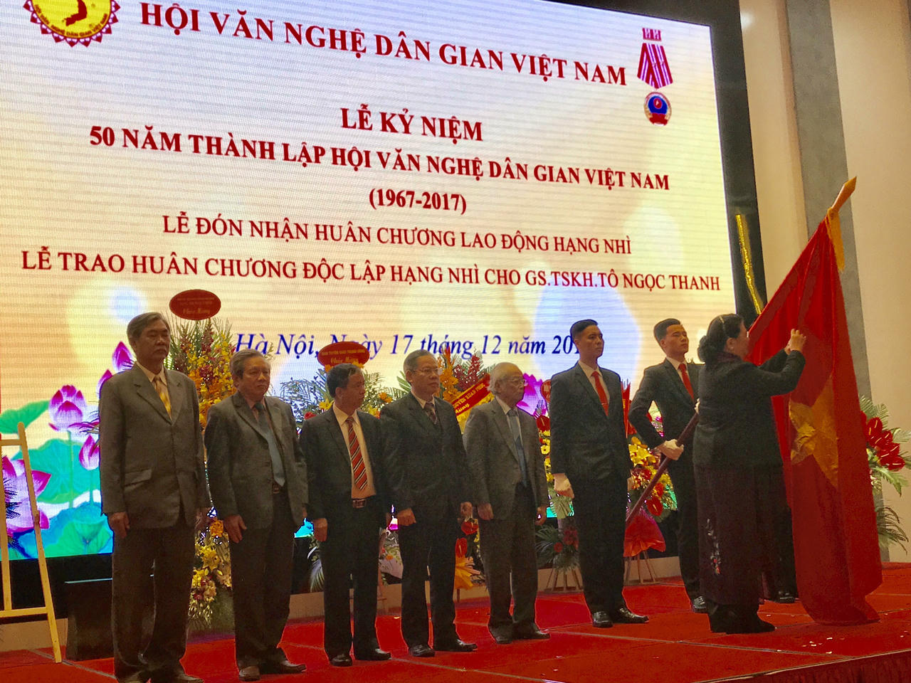 (PLO) - Sáng 17/12/2017, tại Hà Nội, Hội Văn nghệ dân gian Việt Nam đã tổ chức lễ kỷ niệm 50 năm thành lập (1967-2017) và đón nhận Huân chương Lao động hạng Nhì; trao Huân chương Độc lập hạng Nhì cho Giáo sư, Tiến sỹ khoa học Tô Ngọc Thanh, Chủ tịch Hội Văn nghệ dân gian Việt Nam.
