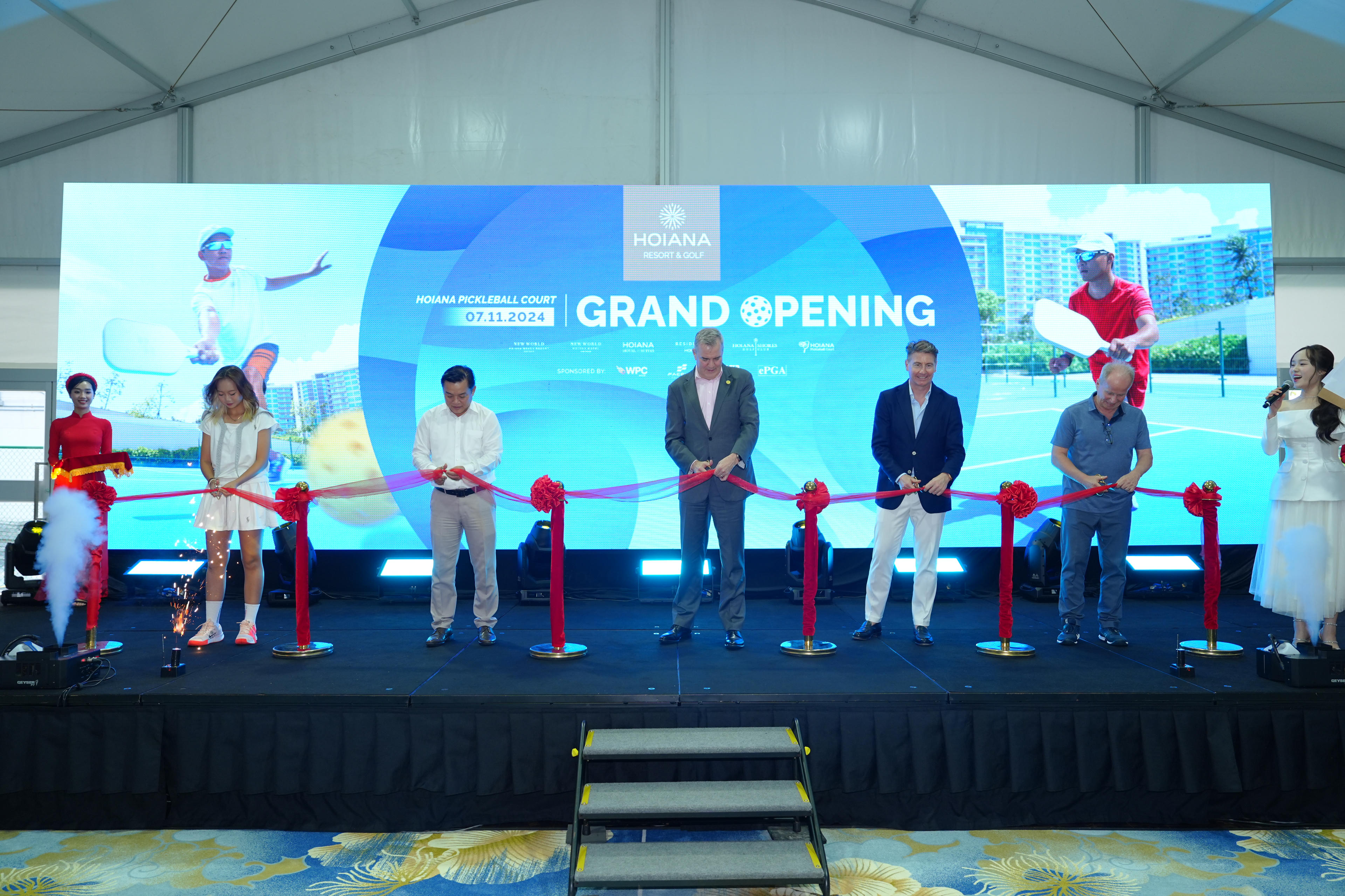 Đại biểu thực hiện nghi thức cắt băng khai trương hệ thống Hoiana Pickleball Court |