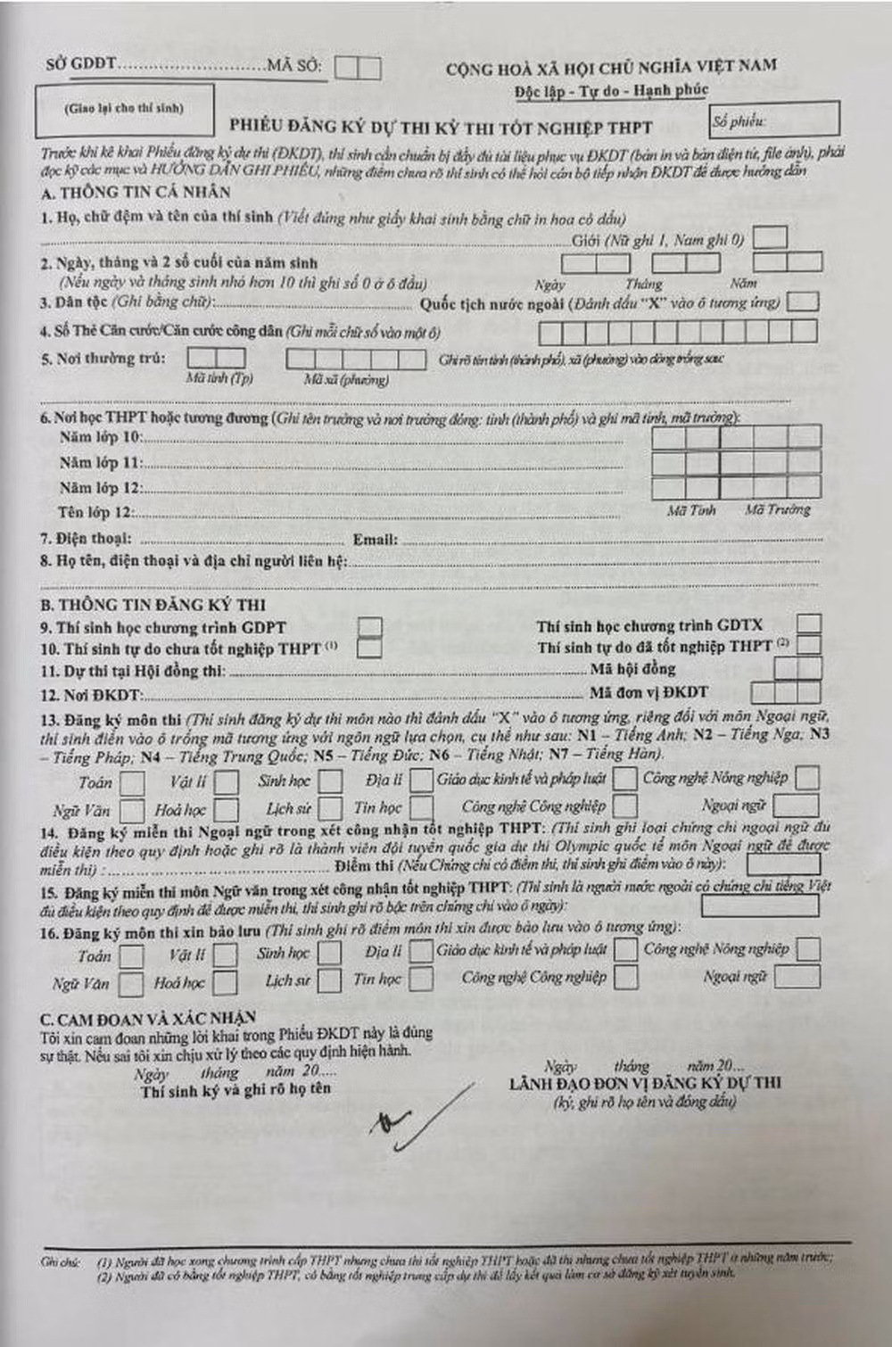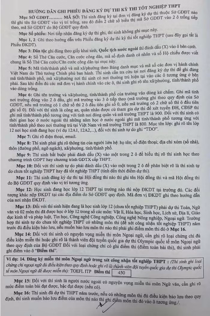 Để hỗ trợ thí sinh cách ghi thông tin chính xác trên Phiếu Đăng ký dự thi và Phiếu đăng ký xét công nhận tốt nghiệp, Bộ Giáo dục và Đào tạo đã có hướng dẫn chi tiết như sau: