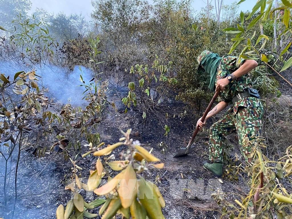 Các lực lượng chức năng gồm công an, bộ đội, kiểm lâm và dân quân đã phối hợp khoanh vùng, chữa cháy trong hơn 1 ngày đêm.