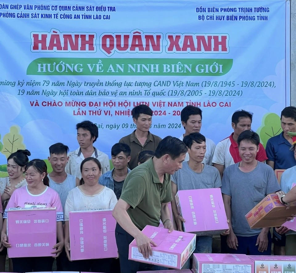 Nhân kỷ niệm 79 năm ngày truyền thống lực lượng Công an nhân dân, 39 năm ngày hội toàn dân bảo vệ biên giới quốc, Văn phòng cơ quan cảnh sát điều tra và Phòng cảnh sát kinh tế công an tỉnh Lào Cai phối hợp với đồn biên phòng Trịnh Tường vừa tổ chức tặng hơn 100 suất quà cho các hộ dân và các cháu học sinh có hoàn cảnh khó khăn trên địa bàn.
