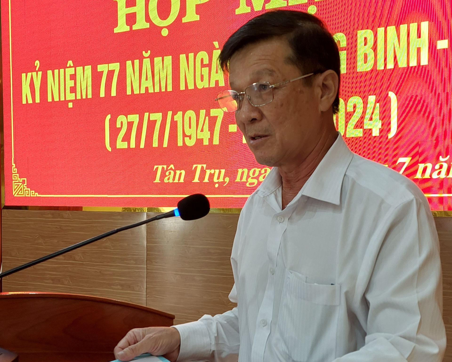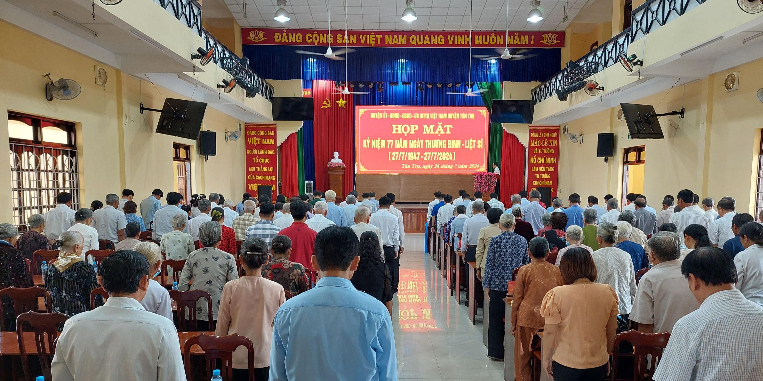 Sáng 24/7, Huyện ủy, HĐND, UBND, Ủy ban MTTQ Việt Nam huyện Tân Trụ long trọng tổ chức họp mặt kỷ niệm 77 năm ngày thương binh liệt sỹ (27/7/1947-27/7/2024) nhằm ôn lại ý nghĩa ngày Thương binh - Liệt sỹ, thể hiện sự tri ân, lòng biết ơn đối với người có công với cách mạng.