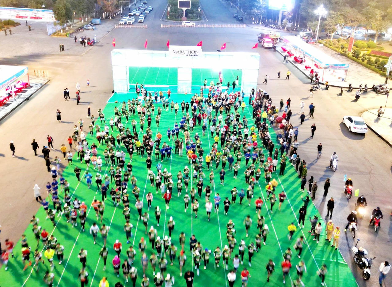 Giải Marathon Lai Châu năm 2024 có trên 1.000 vận động viên đến từ tỉnh Lai Châu, các câu lạc bộ thể thao của 18 tỉnh, thành phố trên cả nước và thành viên trong Đoàn Công tác huyện Kim Bình (tỉnh Vân Nam, Trung Quốc). (Ảnh: laichau.gov.vn)