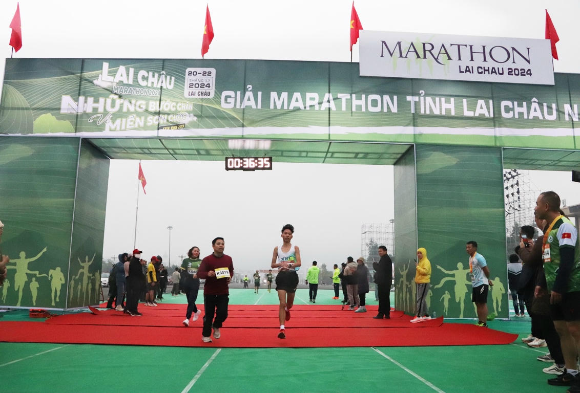 Đồng thời, Giải Marathon Lai Châu năm 2024 còn đóng vai trò là cầu nối giúp quảng bá, giới thiệu cảnh quan thiên nhiên kỳ vĩ tươi đẹp, ẩm thực phong phú đa dạng và những giá trị văn hóa truyền thống tốt đẹp cùng với sự thân thiện, mến khách của Nhân dân các dân tộc trên địa bàn đến đông đảo du khách trong nước và quốc tế; tạo cho du khách dấu ấn về "Lai Châu - Điểm đến an toàn, hấp dẫn, mến khách". (Ảnh: laichau.gov.vn)