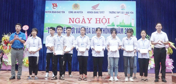 Nhân dịp này, huyện Bảo Yên đã trao 15 suất quà (300 nghìn đồng/suất) cho học sinh nghèo vượt khó Trường THPT số I Bảo Yên (ảnh trên). Huyện đoàn Bảo Yên tổ chức ký cam kết thực hiện xây dựng văn giao thông trong trường học năm học 2020 - 2021.