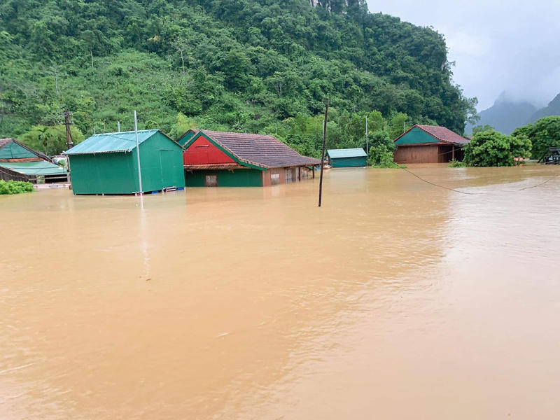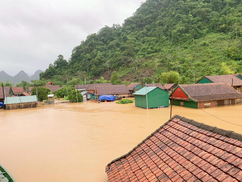 Đặc biệt, tại "rốn lũ" xã Tân Hóa (huyện Minh Hóa) nước dâng sát mái nhà, nhiều thôn bản chìm sâu trong nước lũ.