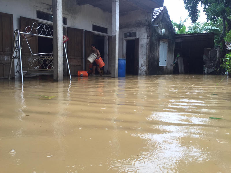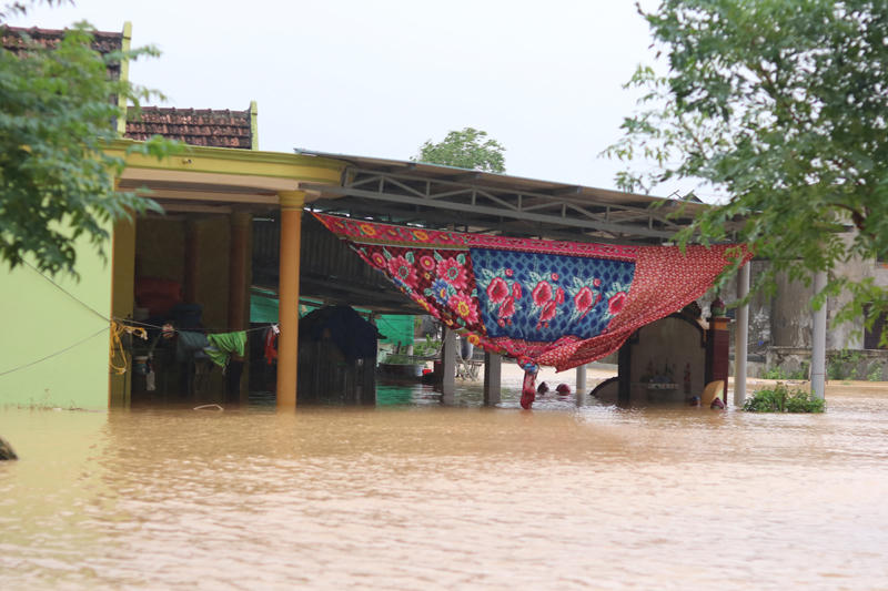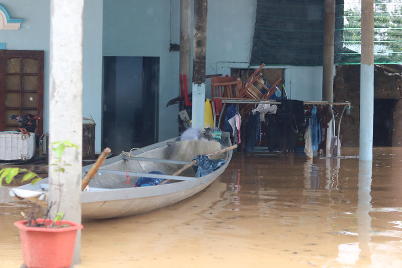 Thống kê sơ bộ, có hơn 550 căn nhà bị ngập sâu 1m-2,5m, người dân tại xã Tân Hóa đang phải tạm thời tránh lũ trên các nhà nổi.