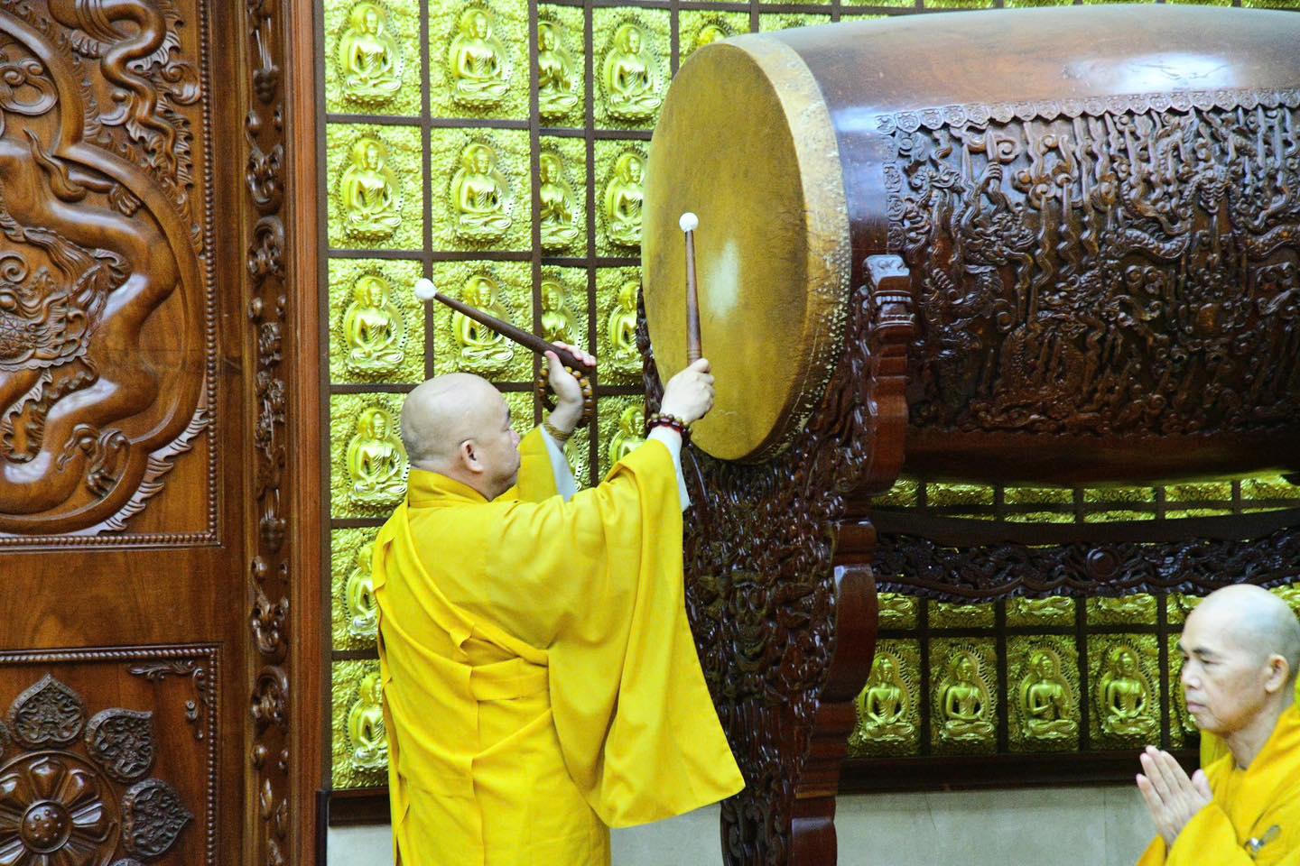 Tại trú xứ – chùa Quốc Ân Khải Tường (xã Long Phước, tỉnh Đồng Nai), Trưởng lão Hòa thượng Thích Thiện Nhơn – Phó Pháp chủ Hội đồng Chứng minh, Chủ tịch Hội đồng Trị sự GHPGVN đã quang lâm lên đài trống, trang nghiêm thỉnh ba hồi chuông, trống Bát-nhã, khởi xướng cho nghi thức trọng đại.