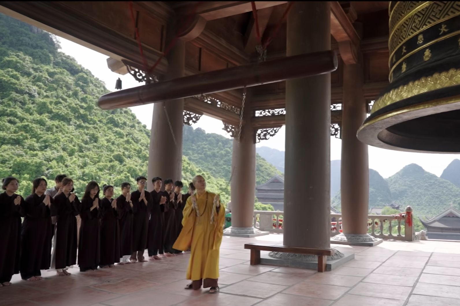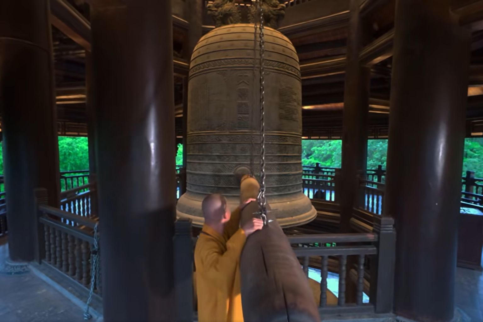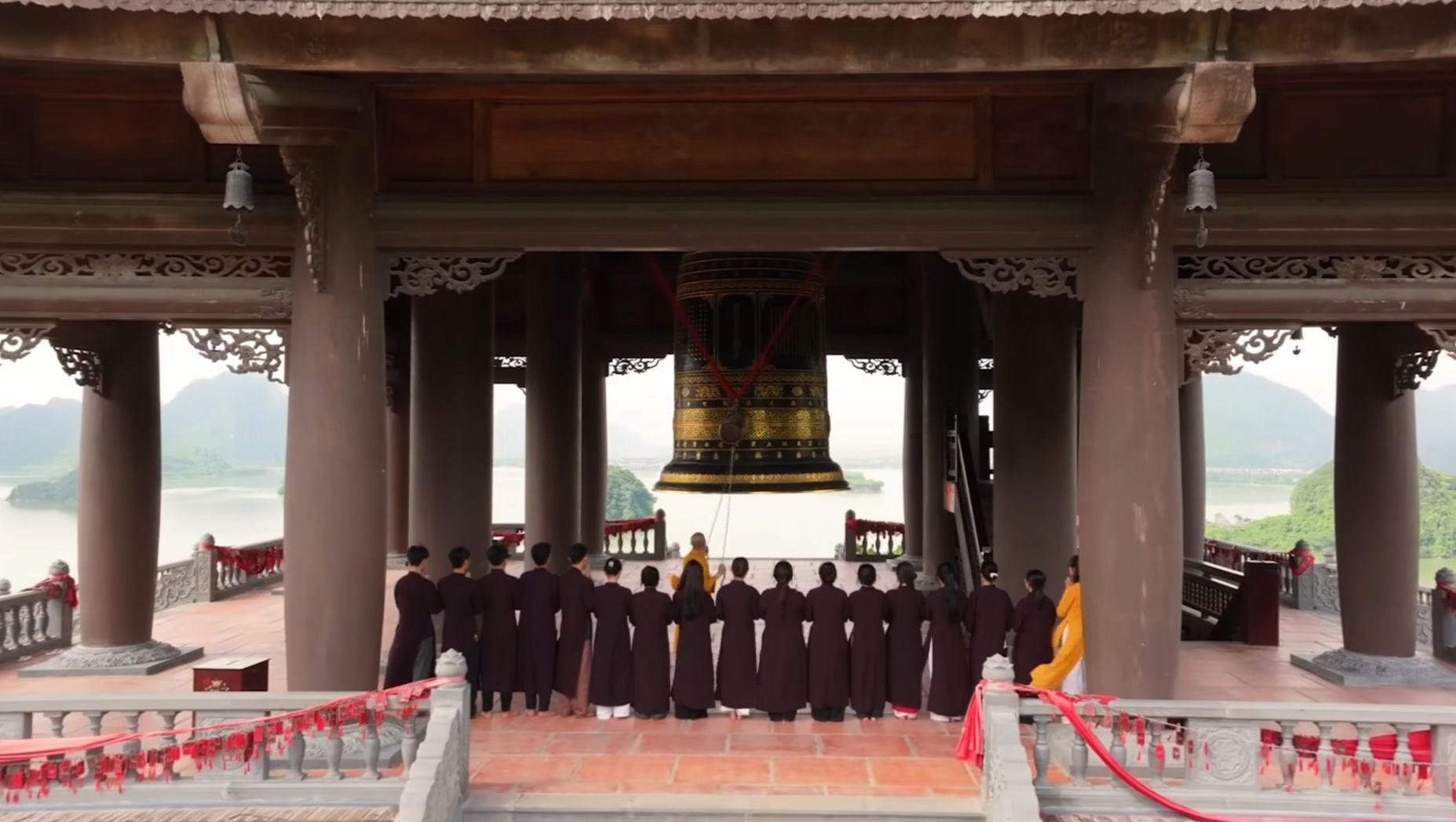 Chùa Bái Đính (Ninh Bình) cũng trang nghiêm thỉnh Đại Hồng Chung, nguyện cầu Quốc thái dân an, đất nước phồn vinh, dân tộc đoàn kết. (Ảnh: Chụp màn hình) |
