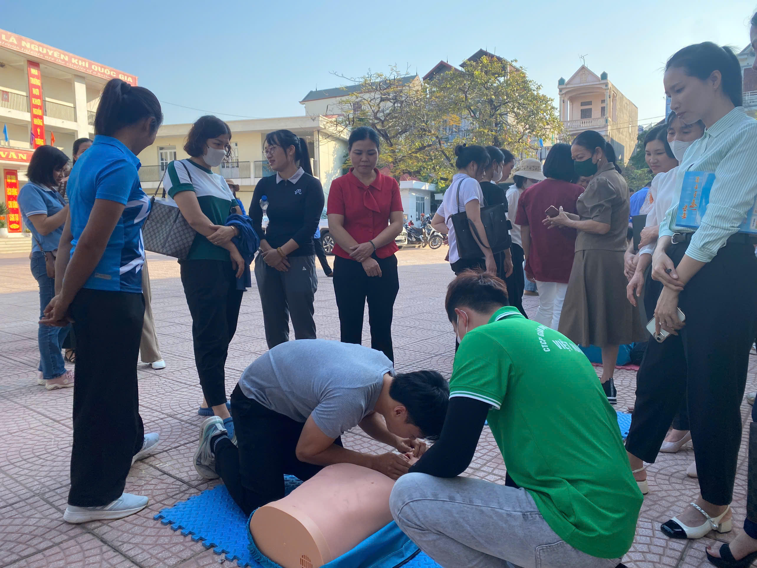 Tại buổi tập huấn, toàn thể cán bộ, giáo viên được tuyên truyền phổ biến kiến thức về PCCC&CNCH và được hướng dẫn cách nhận biết, cơ chế gây nghiện của thuốc lá điện tử, ma túy và các chất gây nghiện. Tập thể cán bộ, Giáo viên cũng được hướng dẫn và thực hành sơ cấp cứu ban đầu đúng cách cho các nạn nhân bị gãy tay, gãy chân, cách băng bó cầm máu đúng cách. Những phương pháp, kỹ năng phòng chống và xử lý khi bị hóc, sặc dị vật đường thở cũng được giảng viên (Chuyên gia của Cty CPGD-KHAT Việt Nam) truyền đạt tỉ mỉ và cẩn thận.
