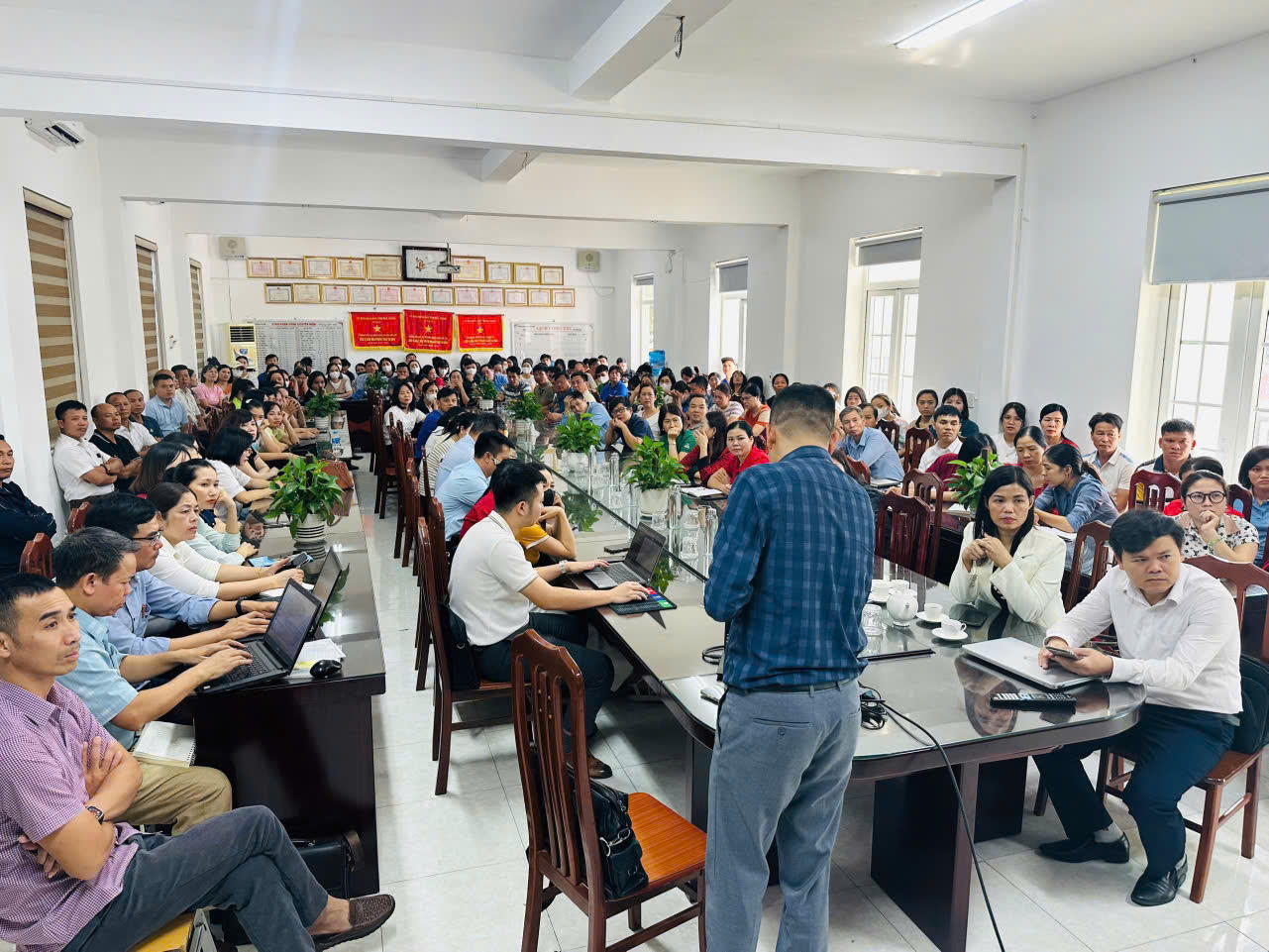 Cán bộ, giáo viên các trường trên địa bàn thị xã Việt Yên tham dự chương trình. |