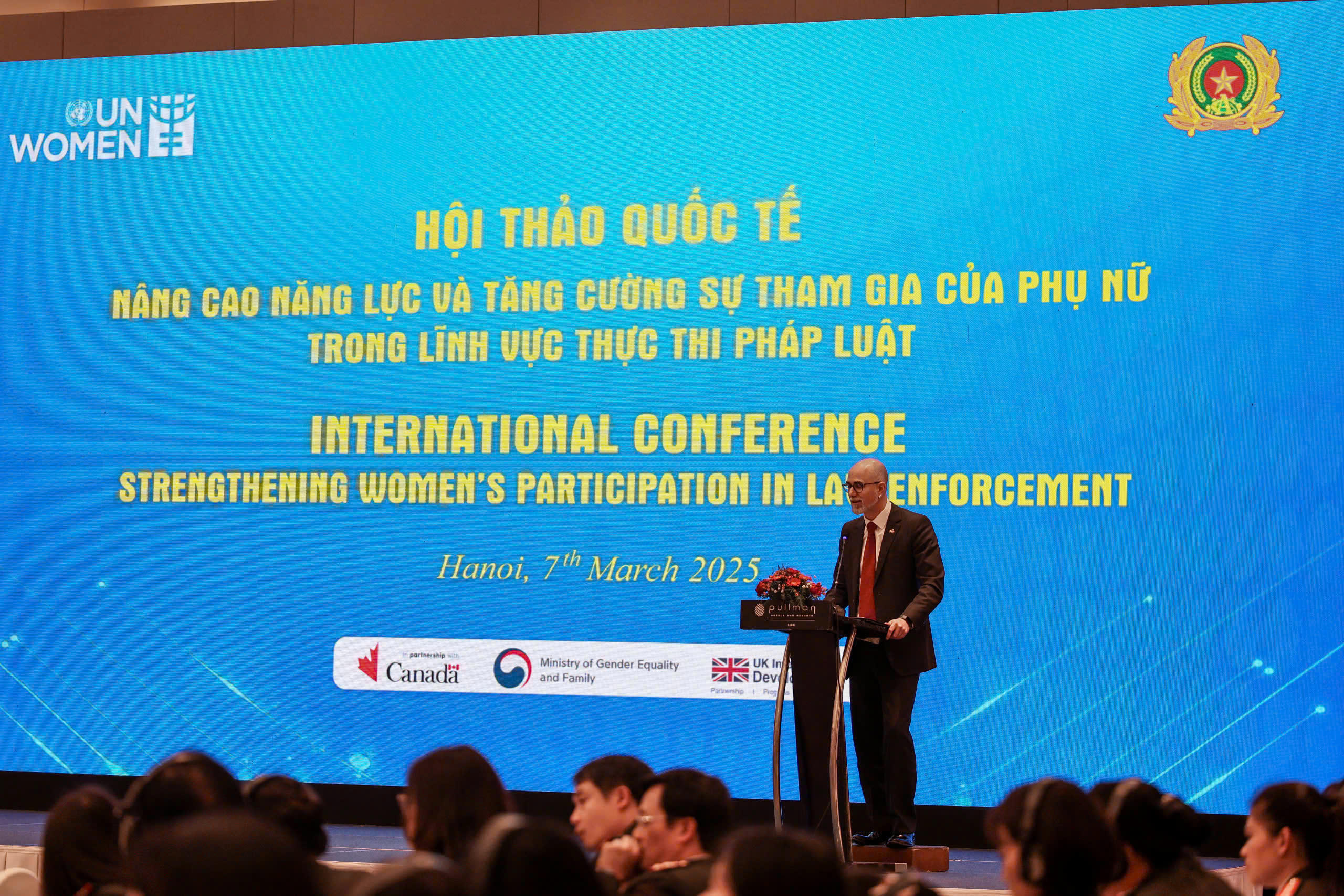 Phát biểu tại hội nghị, bà Caroline Nyamayemombe, Trưởng đại diện UN Women tại Việt Nam, cho biết: “Phụ nữ trong lực lượng thực thi pháp luật đóng vai trò thiết yếu trong việc xây dựng niềm tin với cộng đồng, ngăn ngừa bạo lực và ứng phó với khủng hoảng. Vai trò lãnh đạo của họ rất quan trọng trong việc hình thành hệ thống an ninh toàn diện, đảm bảo nhu cầu của phụ nữ và trẻ em gái được đáp ứng đầy đủ,” “UN Women cam kết hỗ trợ Việt Nam trong việc thúc đẩy các mục tiêu bình đẳng giới theo Kế hoạch Hành động Quốc gia về Phụ nữ, Hòa bình và An ninh (NAP WPS) và xây dựng một ngành an ninh nhạy cảm giới.” bà nói thêm.