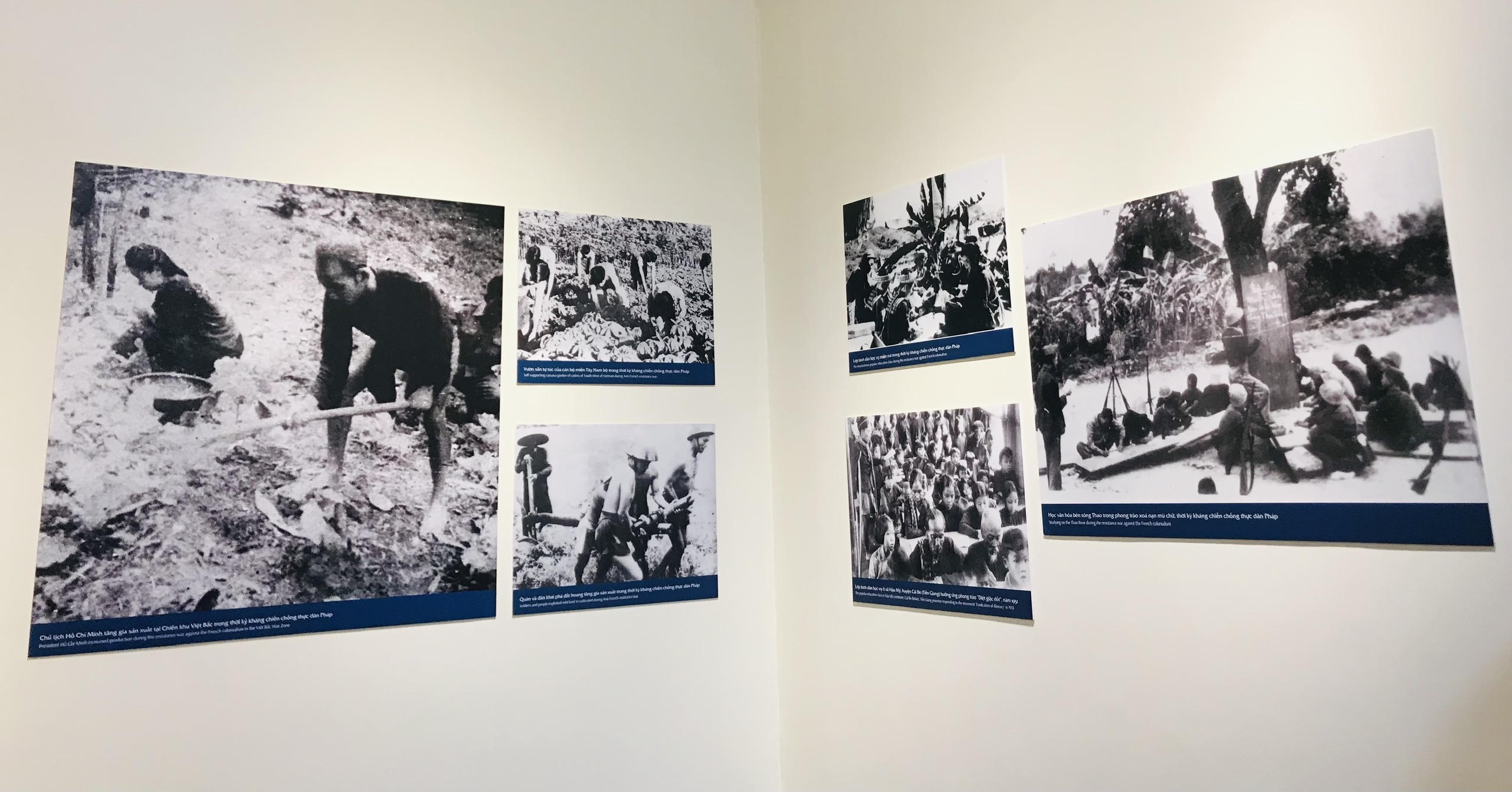 Các bức ảnh về Chủ tịch Hồ Chí Minh với phong trào Thi đua ái quốc tại cuộc trưng bày (ảnh Bảo Châu). |