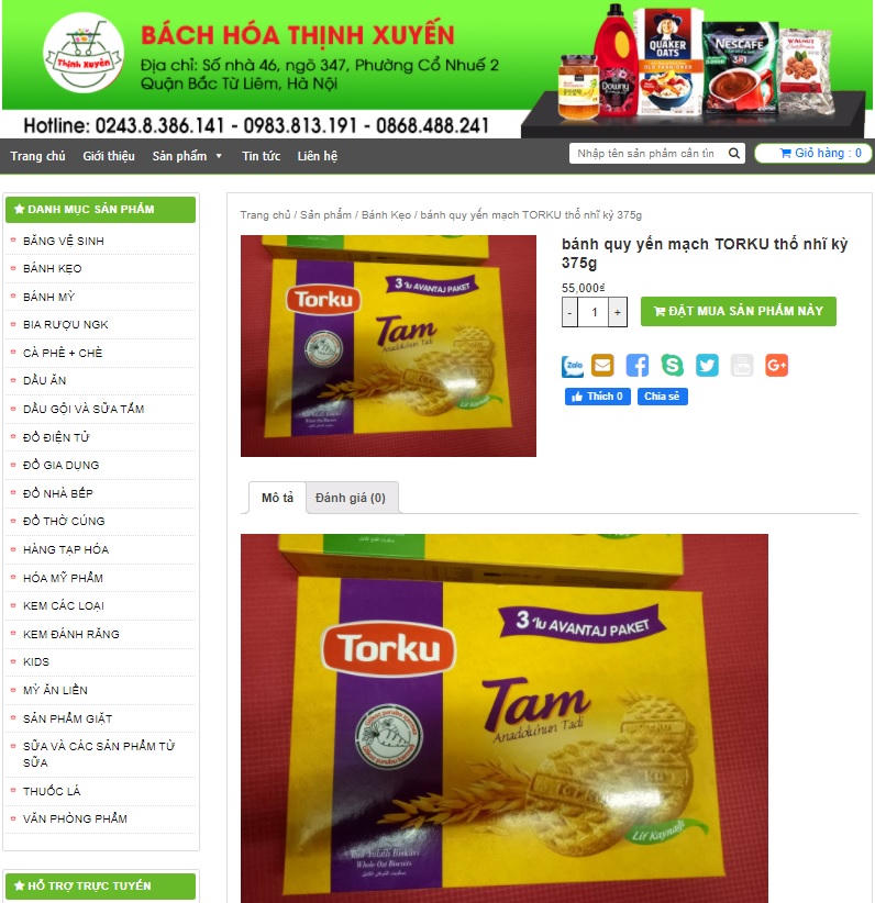 Khảo sát trên thị trường thương mại điện tử hiện nay, giá một gói bánh quy yến mạch Torku rơi vào khoảng từ 55.000 - 60.000 đồng/gói và được bán nhiều trên các trang thương mại điện tử: