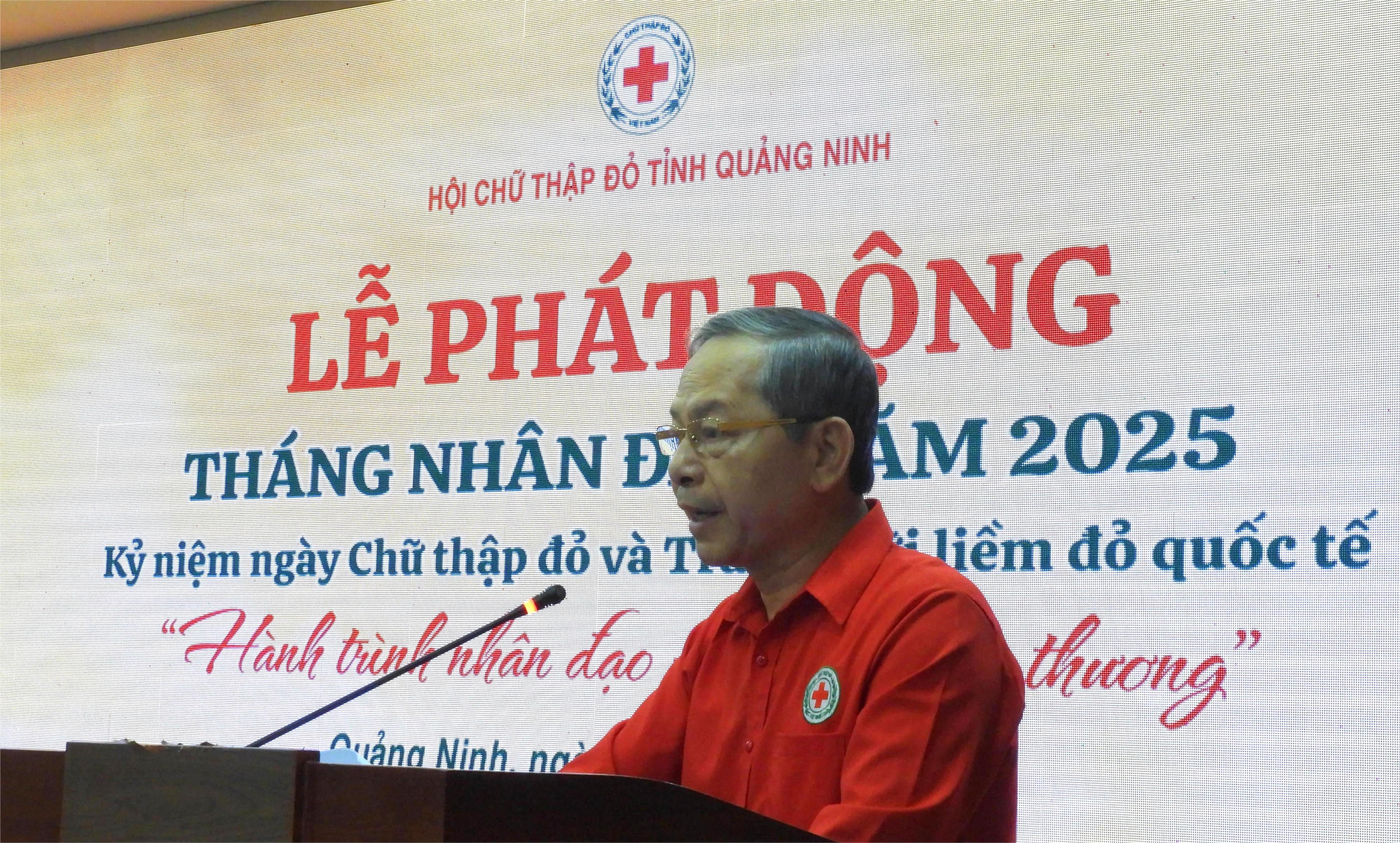 Phát biểu tại Lễ phát động, Chủ tịch Hội Chữ thập đỏ tỉnh Quảng Ninh Vũ Hồng Hải cho biết, các cấp Hội Chữ thập đỏ tỉnh Quảng Ninh phấn đấu vận động hỗ trợ xây dựng ít nhất từ 20 căn nhà Chữ thập đỏ; trợ giúp trên 1.000 địa chỉ nhân đạo và người có hoàn cảnh khó khăn; hiến máu tình nguyện đạt 2.500 đơn vị; vận động nguồn lực trị giá đạt trên 3 tỷ đồng và tiếp tục triển khai chương trình hỗ trợ giúp đỡ nạn nhân chất độc da cam, người có hoàn cảnh khó khăn, trẻ em nghèo, khuyết tật trên địa bàn tỉnh bảo đảm kịp thời, hiệu quả, thiết thực...
