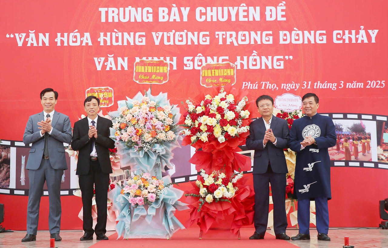 (PLVN) - Ngày 31/3/2025 (tức ngày 3/3 Âm lịch), tại Bảo tàng Hùng Vương, thành phố Việt Trì, Sở Văn hóa - Thể thao và Du lịch tỉnh Phú Thọ và Sở Văn hóa - Thể thao và Du lịch tỉnh Vĩnh Phúc phối hợp tổ chức khai mạc trưng bày chuyên đề “Văn hóa Hùng Vương trong dòng chảy văn minh sông Hồng”. Đây là hoạt động văn hoá nổi bật trong chuỗi các hoạt động của Tuần Văn hóa - Du lịch Đất Tổ năm Ất Tỵ - 2025.