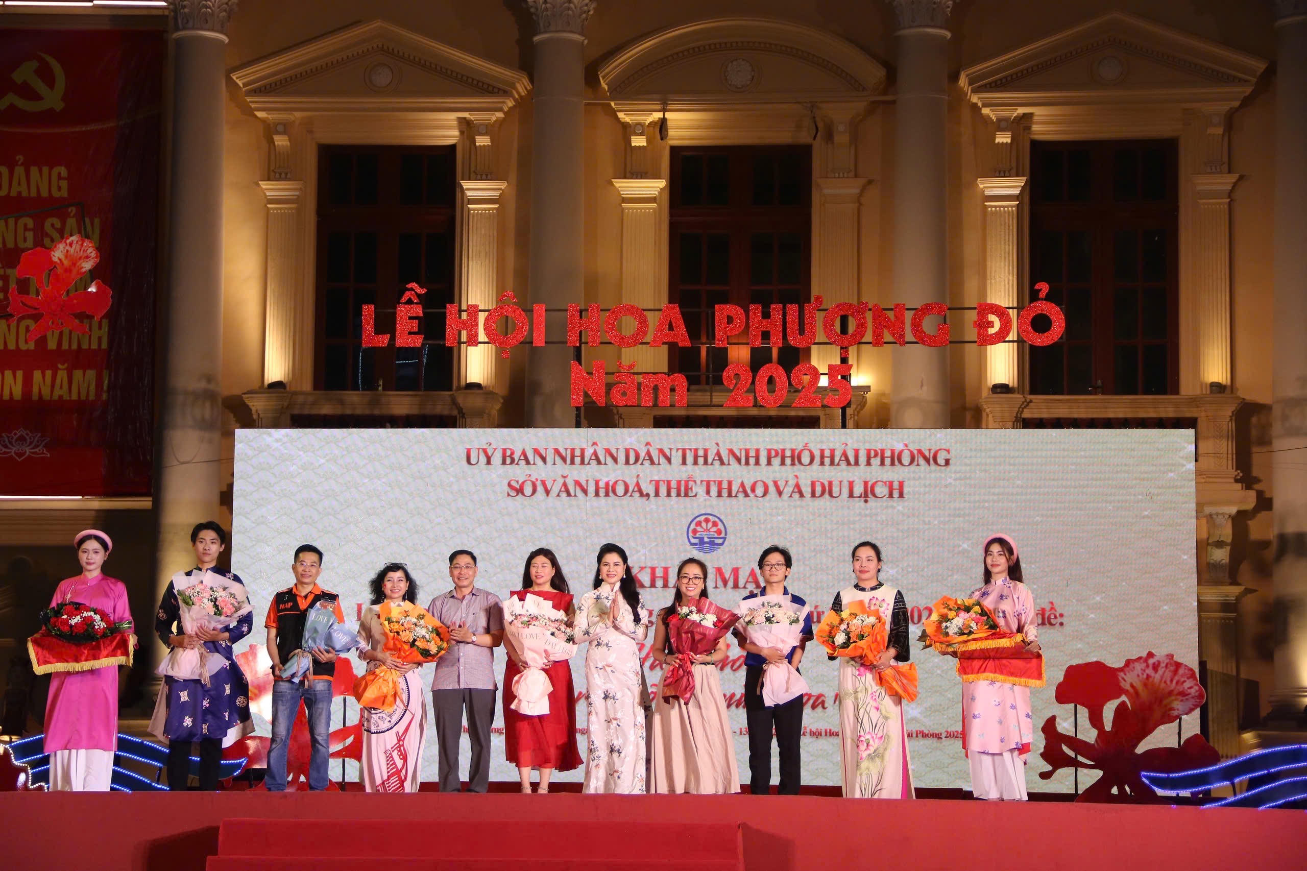 Giám đốc Sở Văn hóa, Thể thao và Du lịch Hải Phòng tặng hoa các đơn vị tham gia Liên hoan. |