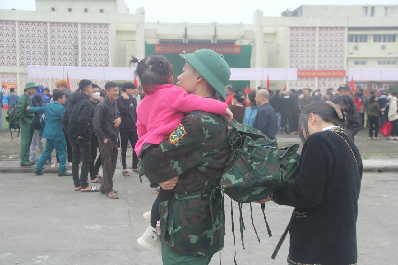 Tân binh Huỳnh Bá Đạt (21 tuổi), trú phường Quang Trung, TP.Vinh ôm con gái nhỏ vào lòng trước giờ lên đường vào quân ngũ. Hai năm là thời gian thử thách và rèn luyện của ông bố trẻ này. Đạt sẽ dần tập làm quen với môi trường, kỷ cương quân đội. “Cả bố và ông nội đều tham gia bộ đội, do đó tôi tiếp bước gia đình thực hiện nhiệm vụ vì Tổ quốc. Lúc chuẩn bị lên đường tôi cũng như các tân binh, hồi hộp và lo lắng. Biết là sẽ nhớ vợ con, gia đình nhưng vì nhiệm vụ thiêng liêng tôi sẽ cố gắng hết mình. Chỉ mong vợ ở nhà giữ gìn sức khoẻ cùng ông bà nuôi con tốt”, tân binh Đạt chia sẻ.