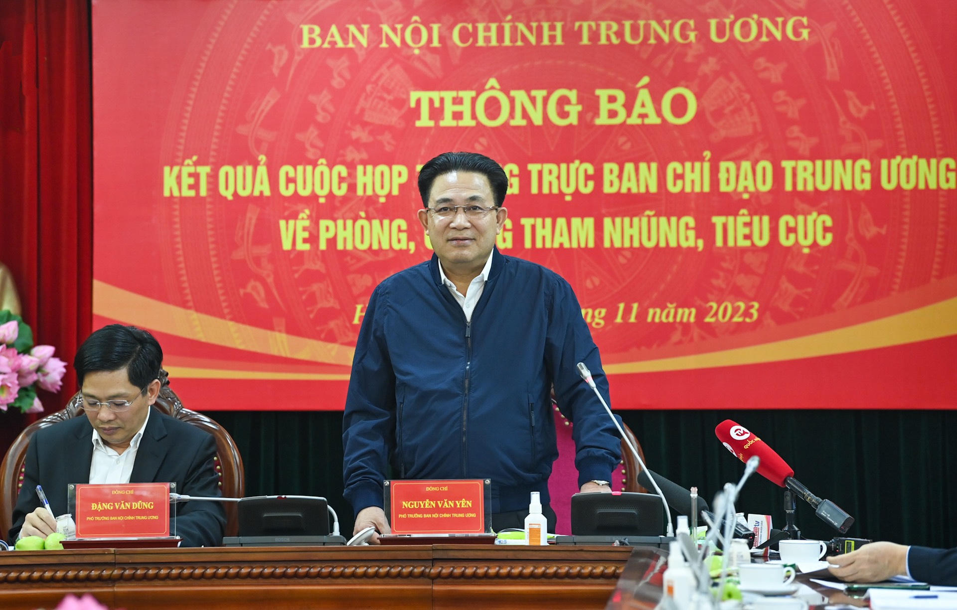Phó Trưởng Ban Nội chính Trung ương Nguyễn Văn Yên thông tin tại cuộc họp. |